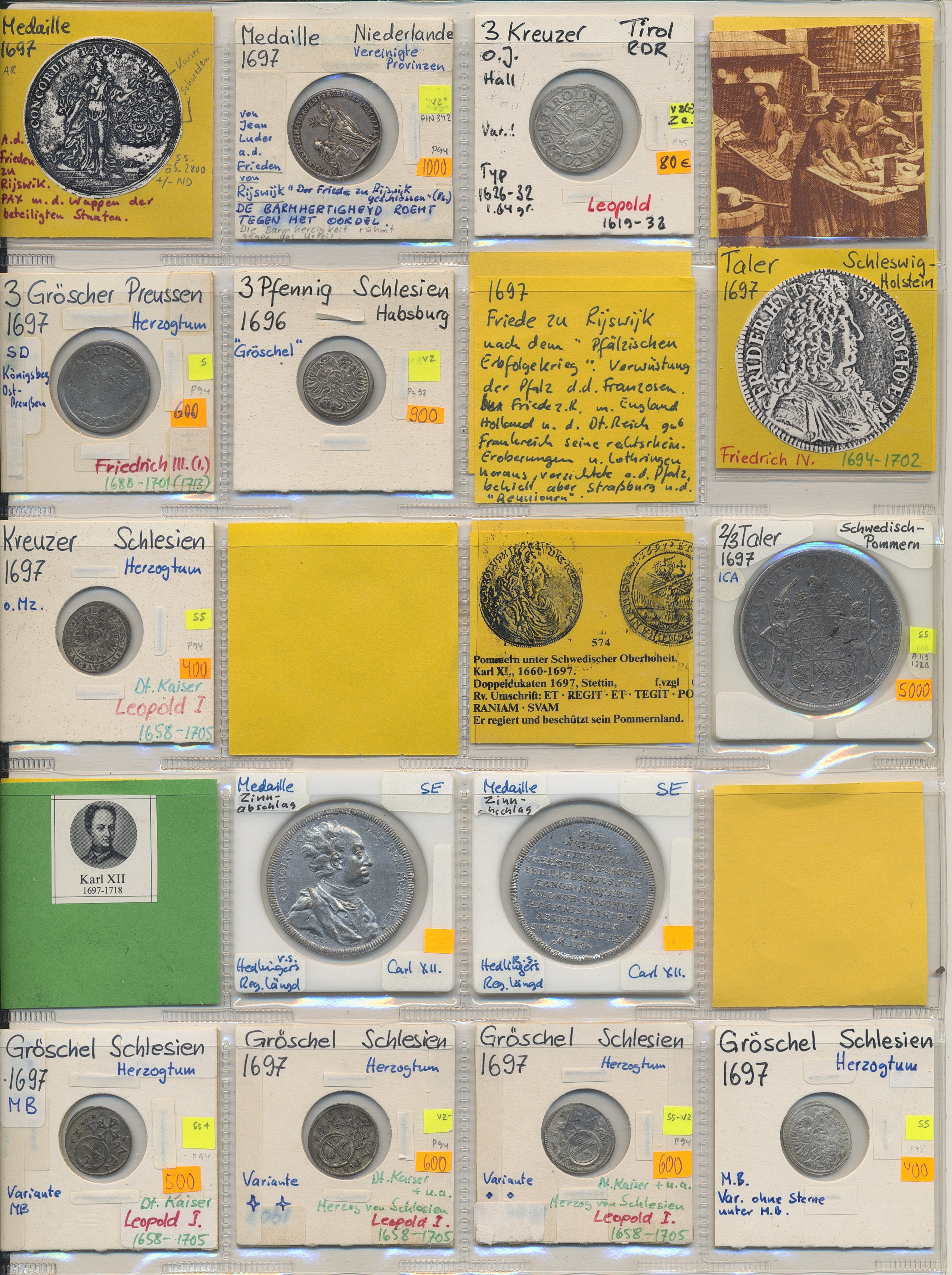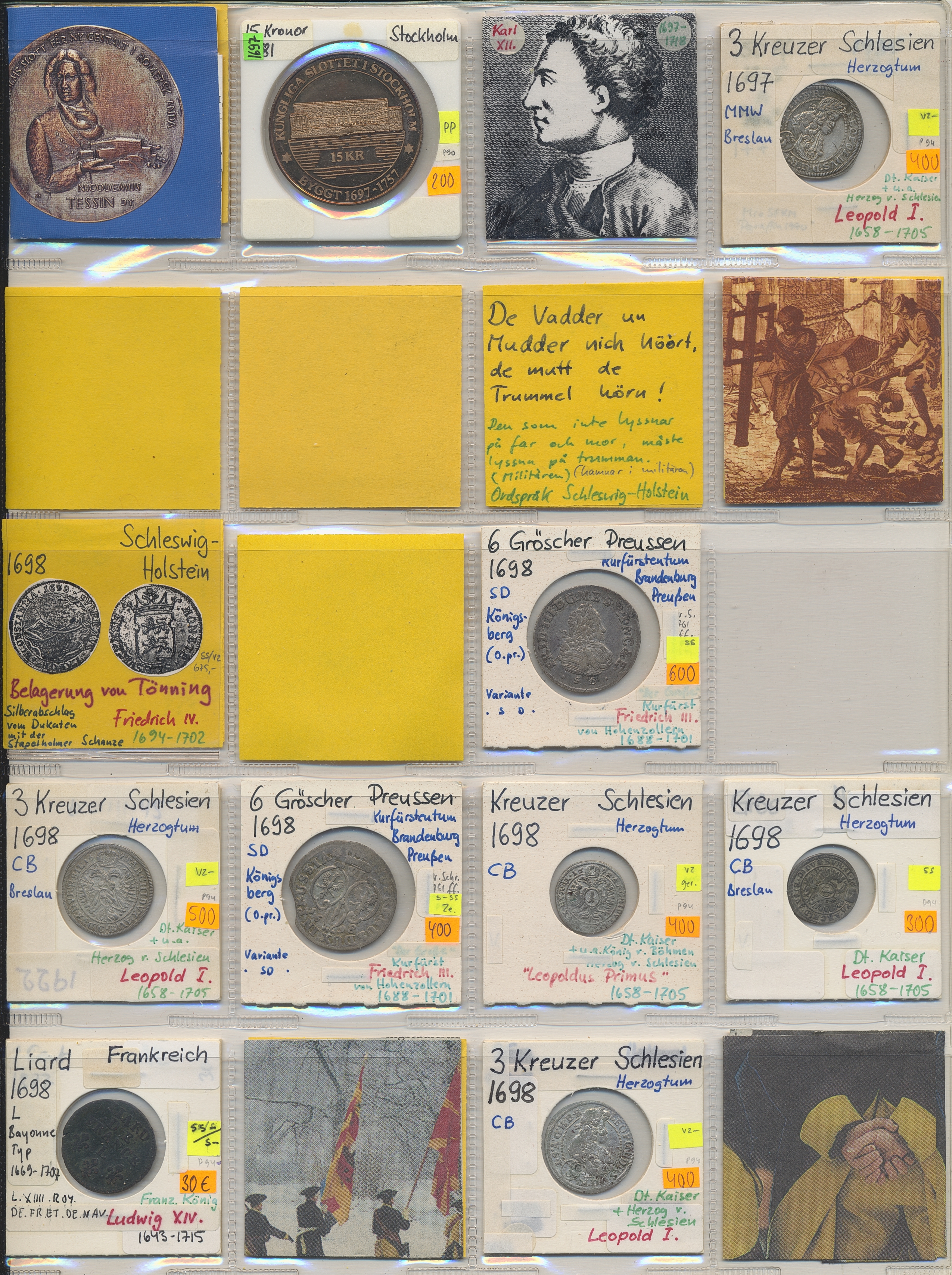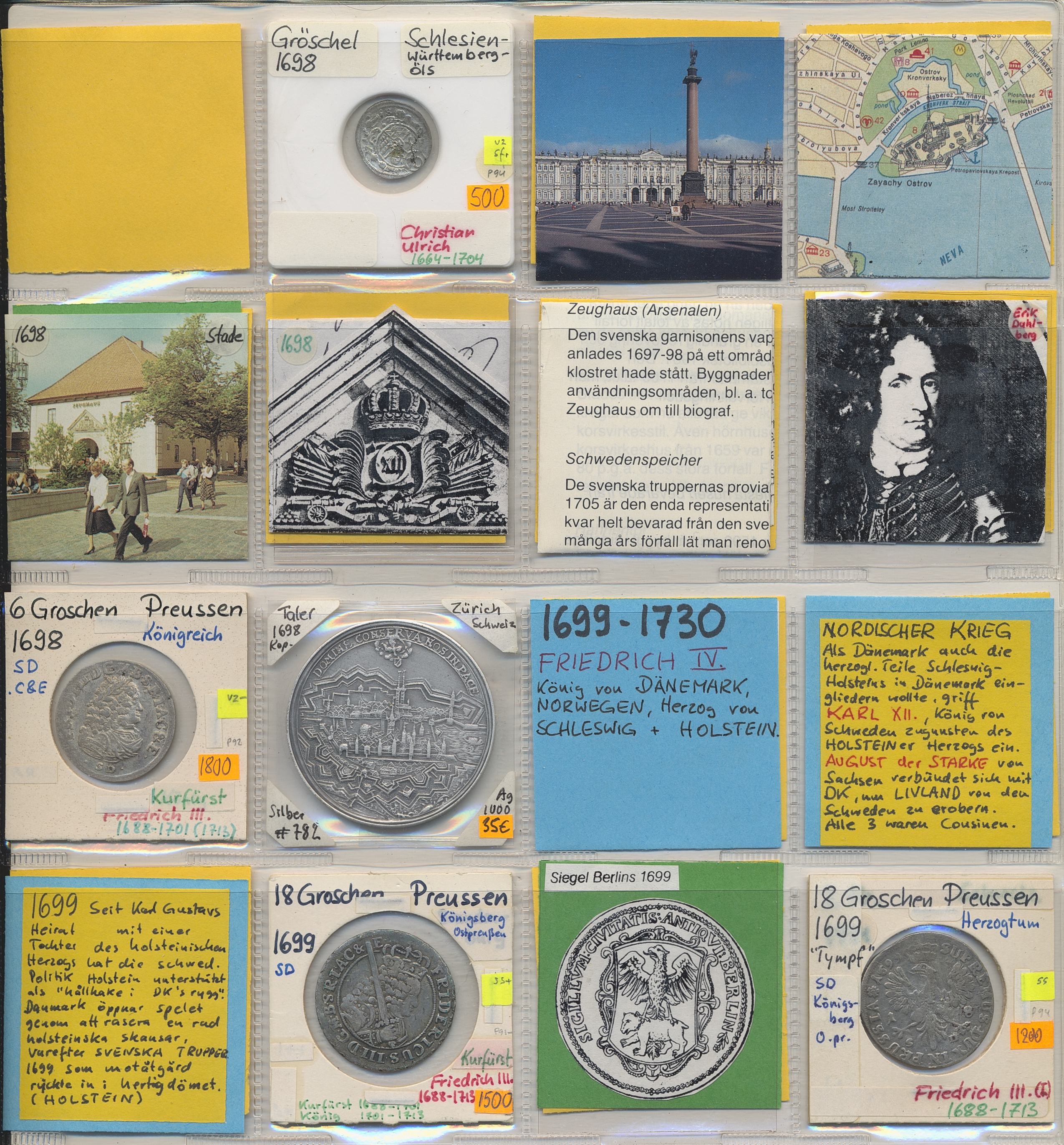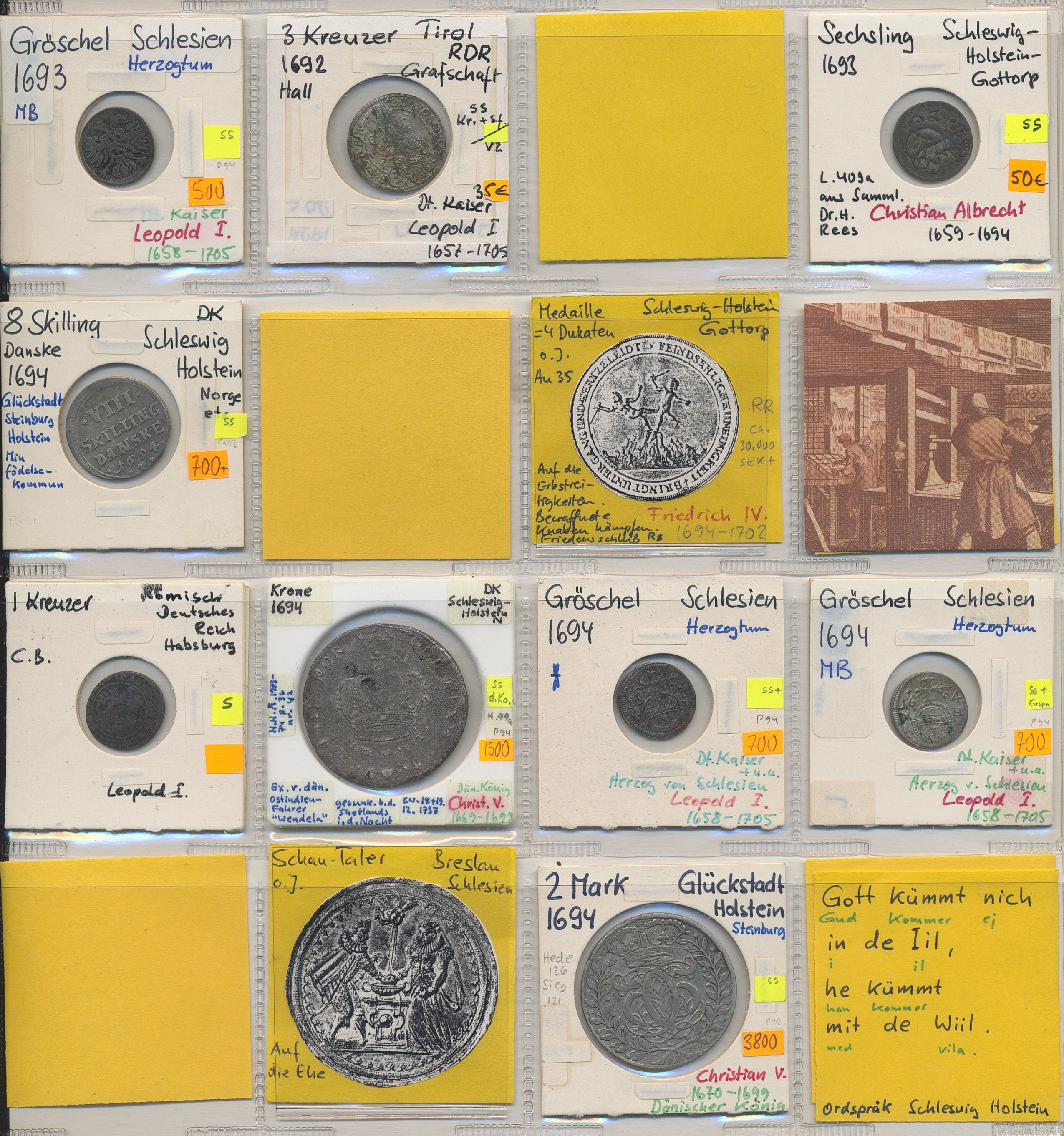 Coins, Germany, mixed. Collection of medals and coins including many in silver from ca. 1600s–1800s including taler sized coins. Most items are from Germany or related to Germany – Scandinavian also noted. Please inspect! VG-XF/UNC.