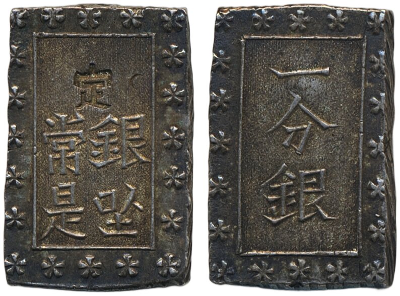Coins, Japan. KM C16a, 1 bu ND (1859–1868). 8.63 g. Ansei era. VF-XF.
