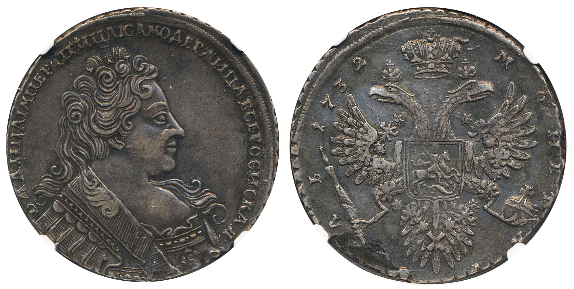 Coins, Russia. Anna, Bitkin 47, 1 rouble 1732. 25.32 g. Graded by NGC as XF40. VF-XF. See certification at NGC
