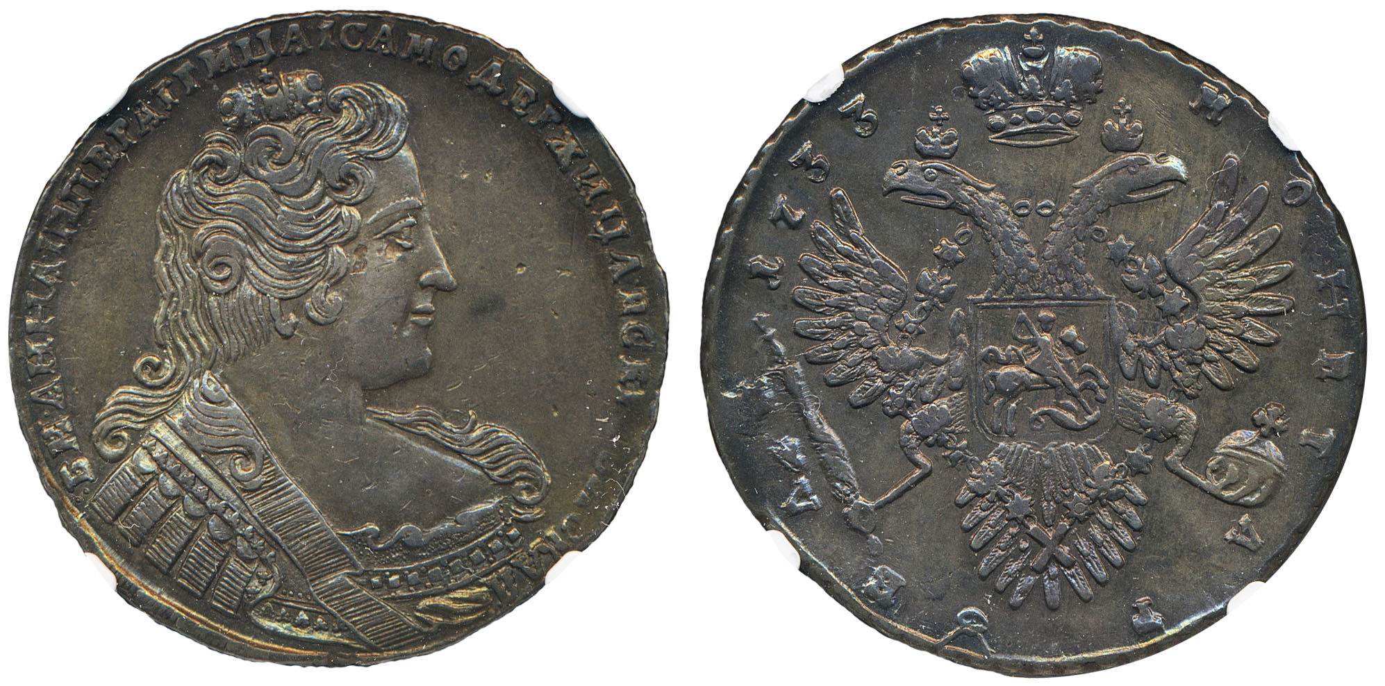 Coins, Russia. Anna, Bitkin 66, 1 rouble 1733. 25.44 g. Graded by NGC as AU53. XF. See certification at NGC