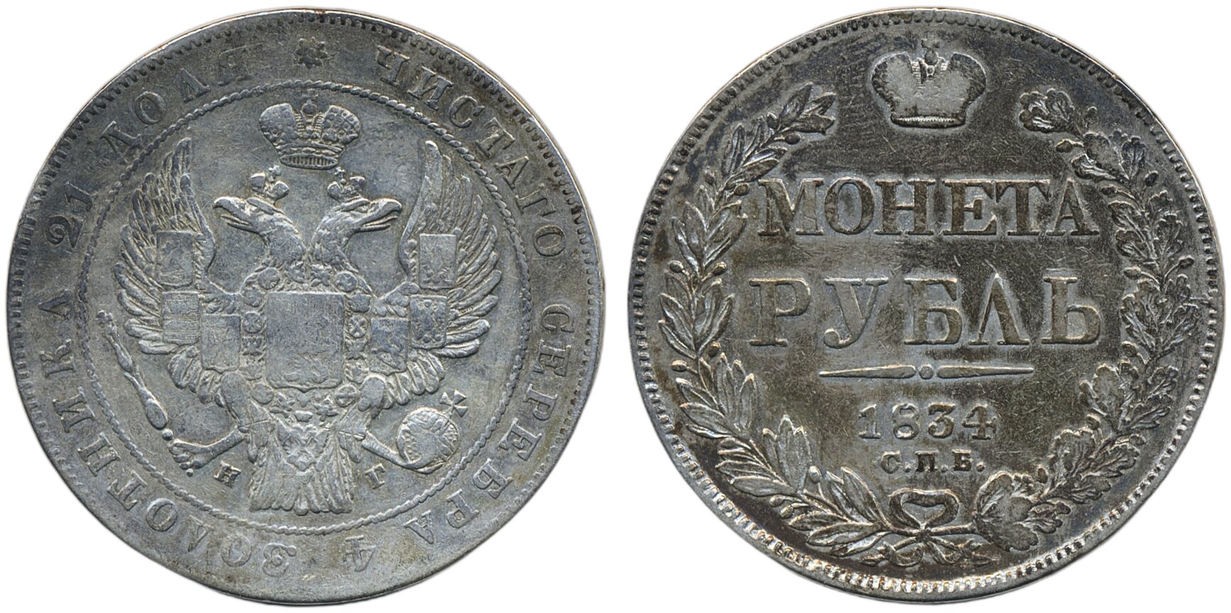 Coins, Russia. Nicholas I, Bitkin 161, 1 rouble 1834. F-VF.