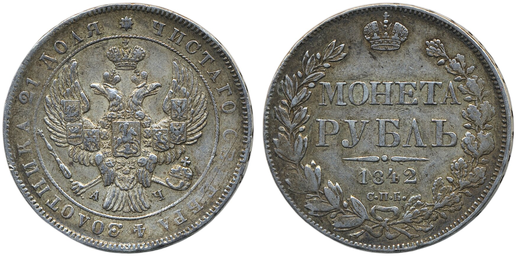 Coins, Russia. Nicholas I, Bitkin 200, 1 rouble 1842. Partly weakly struck. VF-XF.
