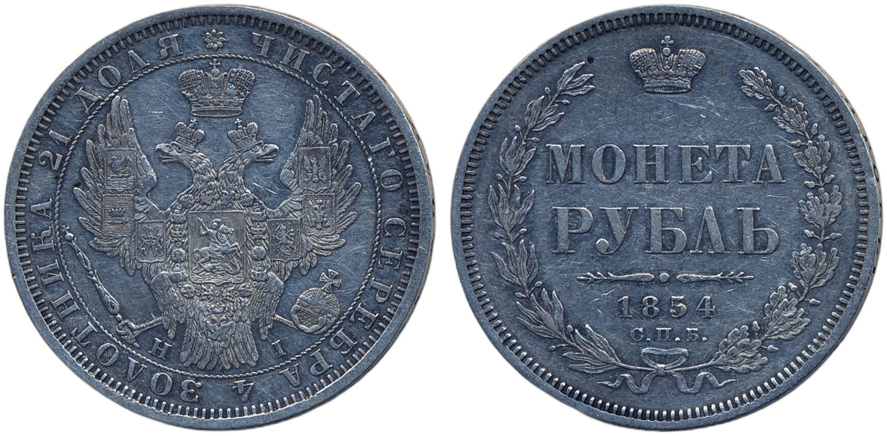 Coins, Russia. Nicholas I, Bitkin 234, 1 rouble 1854. Wreath of 7 links. Cleaned. VF.