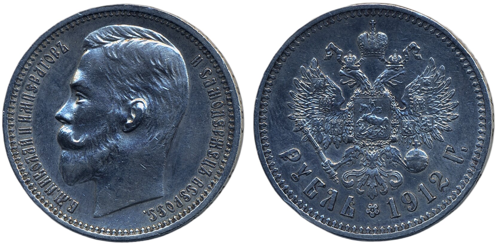 Coins, Russia. Nicholas II, Bitkin 66, 1 rouble 1912. XF.