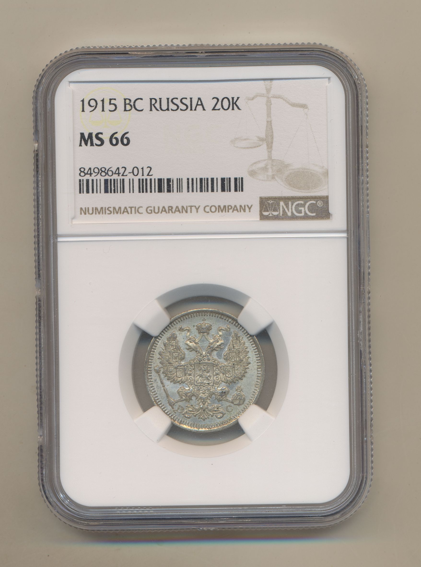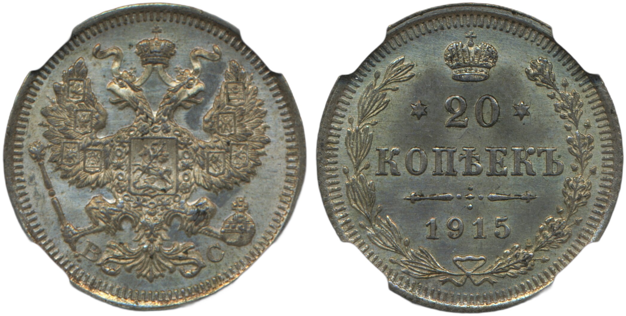 Coins, Russia. Nicholas II, Bitkin 117, 20 kopeks 1915 BC. Graded by NGC as MS66. UNC. See certification at NGC