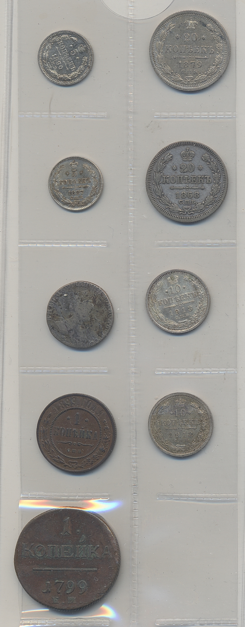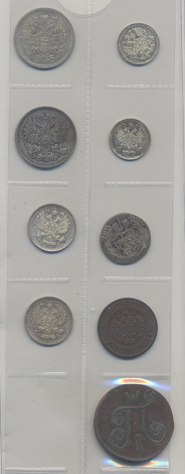 Coins, Russia. Small group of nine Russian coins including five in silver. Please inspect! F-XF.