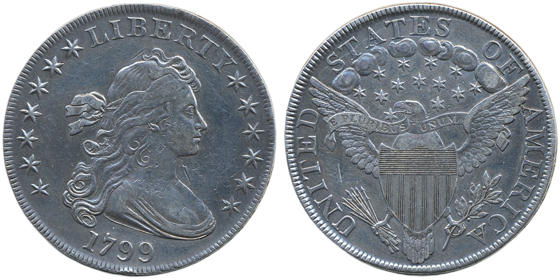Coins, U.S.A. KM 32, 1 dollar 1799. 26.96 g, 13-star reverse. F.