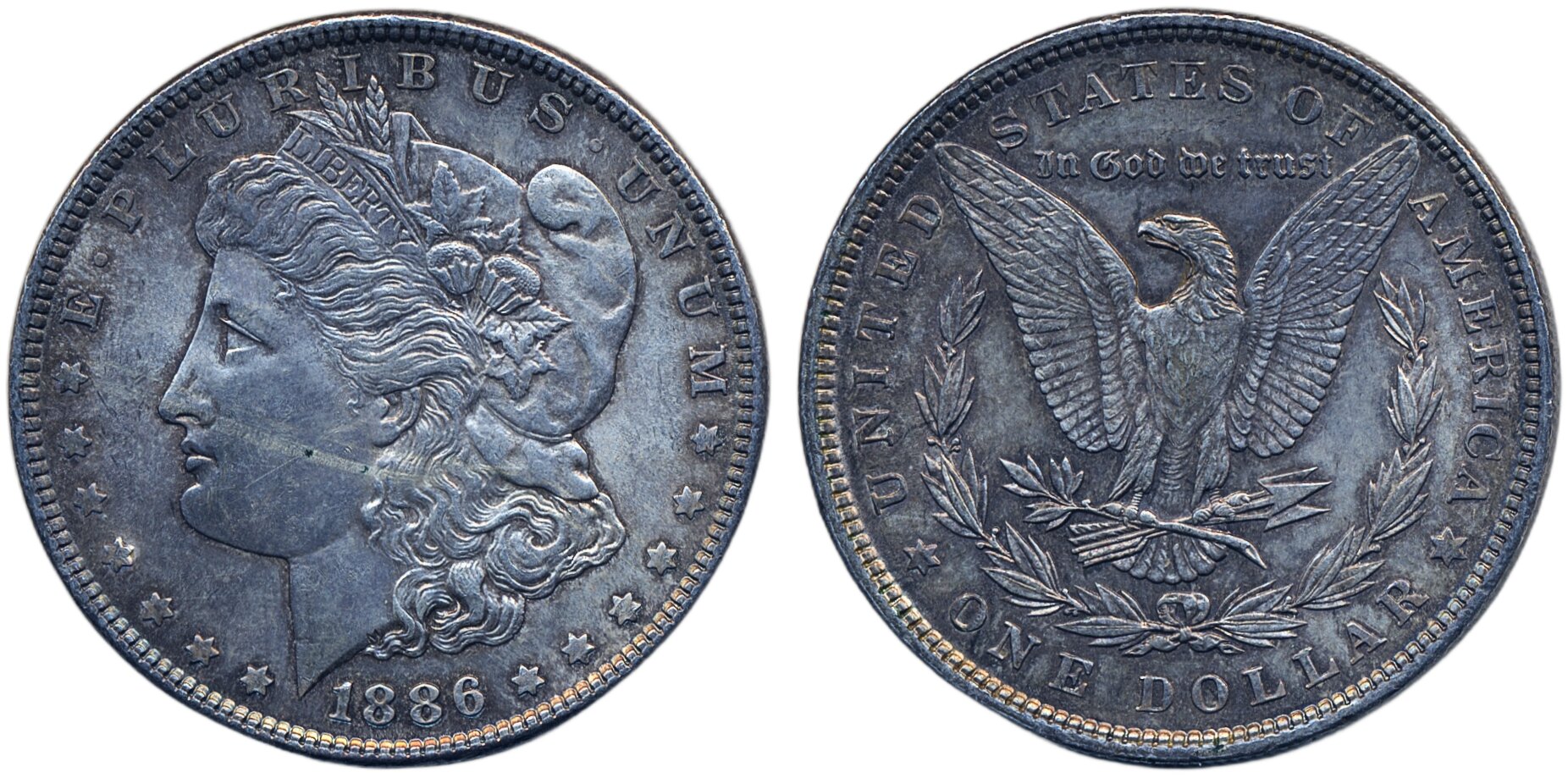 Coins, U.S.A. KM 110, 1 dollar 1886. Beautiful toning. XF-UNC.