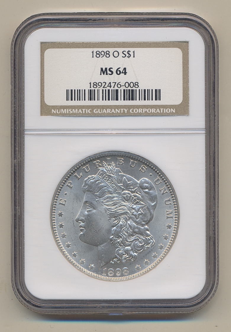 Coins, U.S.A. KM 110, 1 dollar 1898 O. Graded by NGC as MS64, in old holder. XF-UNC. See certification at NGC