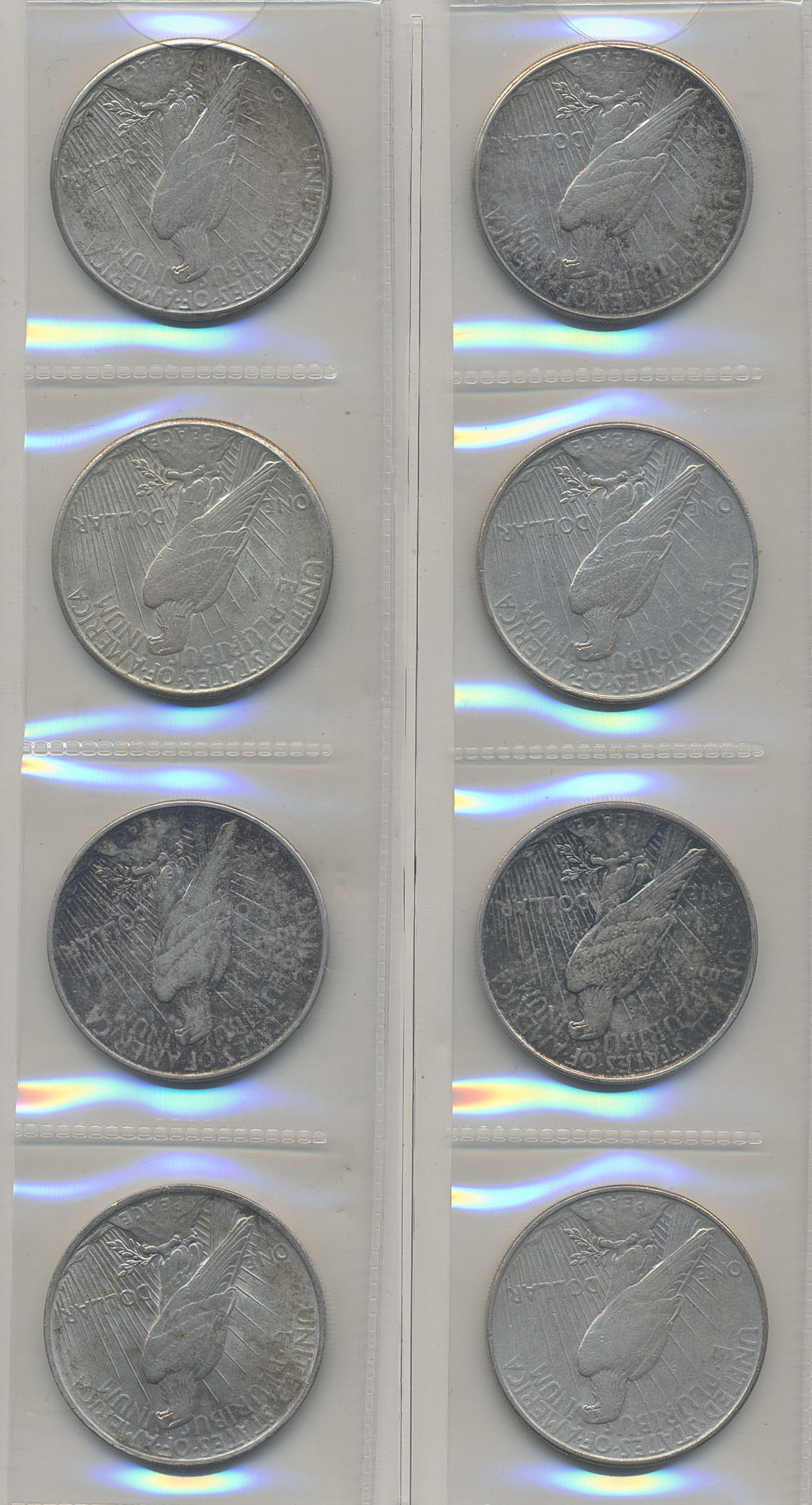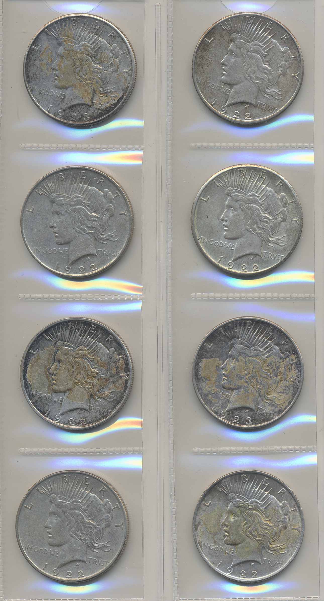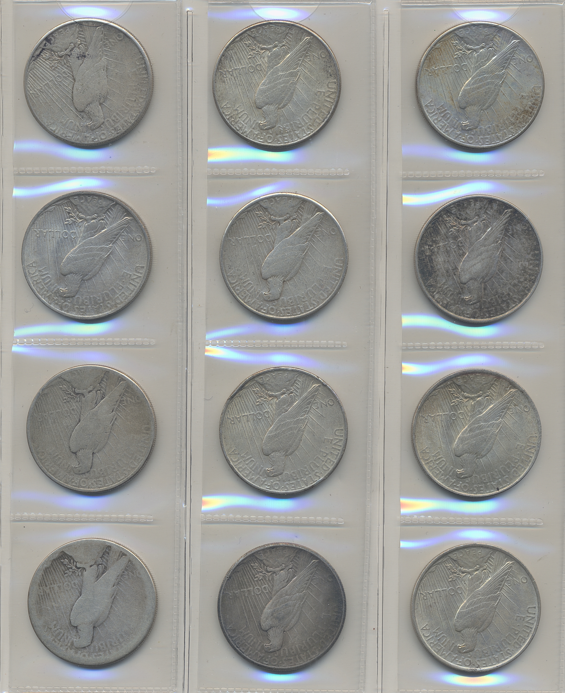 Coins, U.S.A. Lot of 23 peace dollars, three Kennedy halves 1964, four quaters and two dimes. Please inspect! VG-XF/UNC.