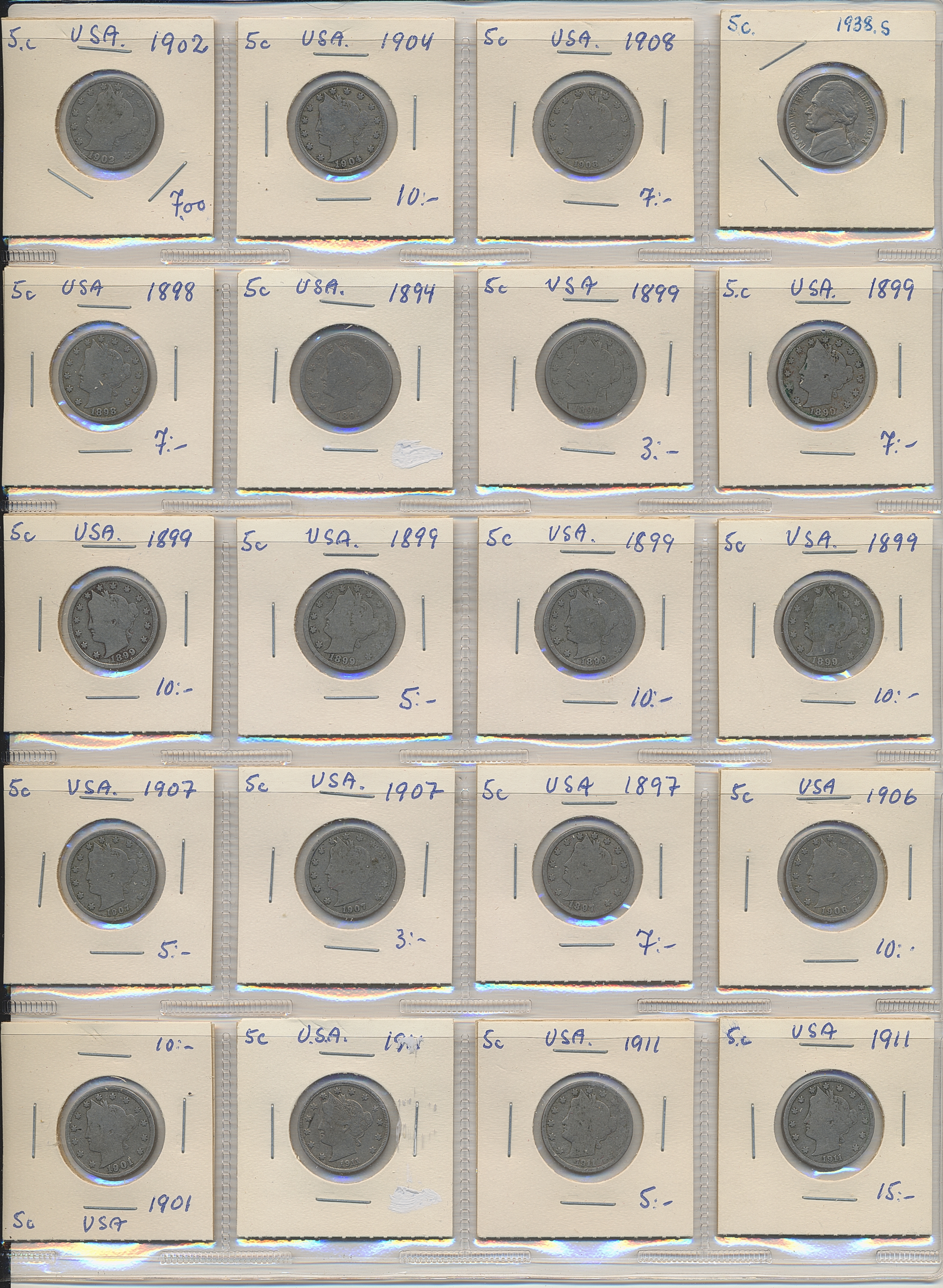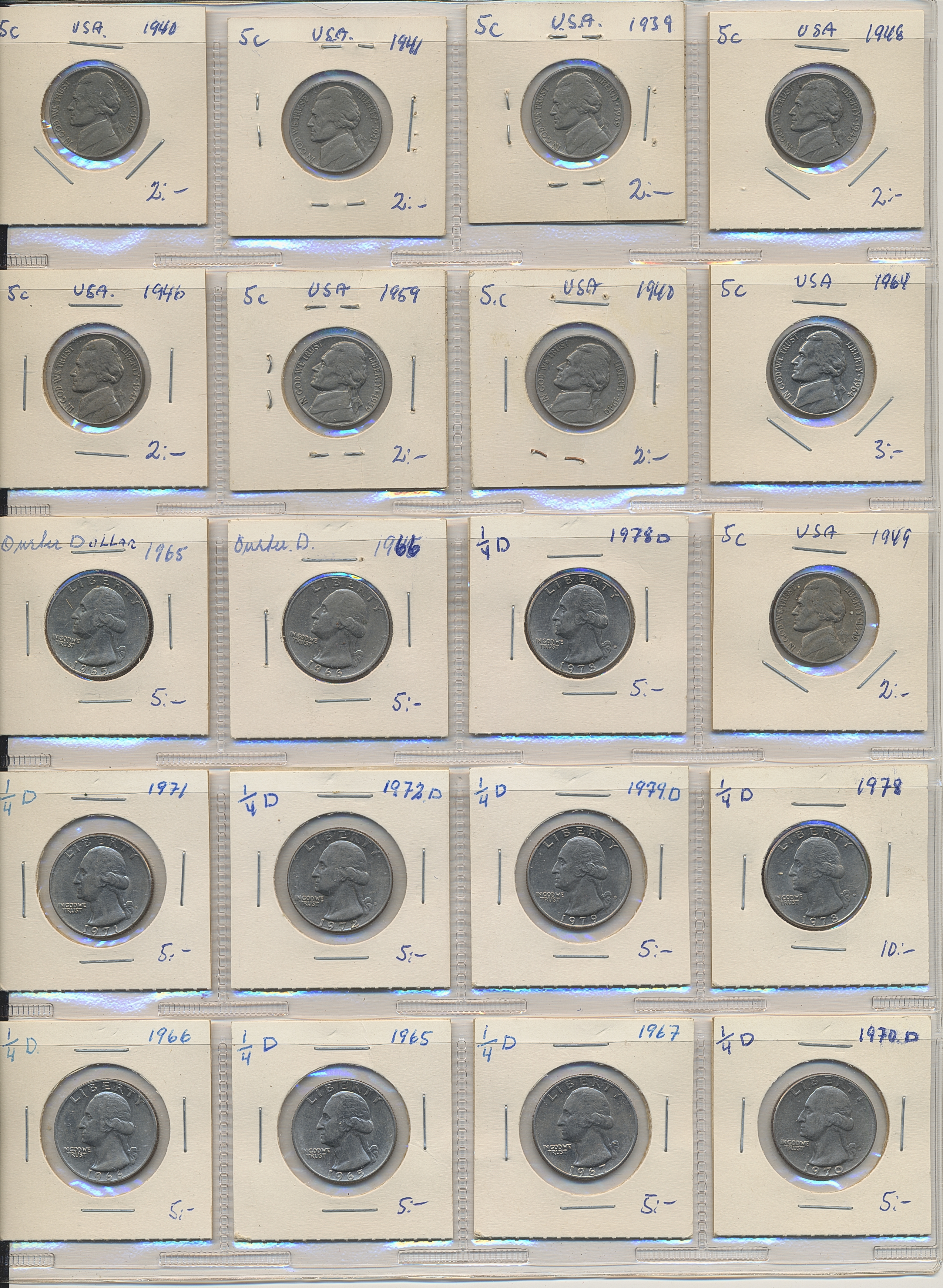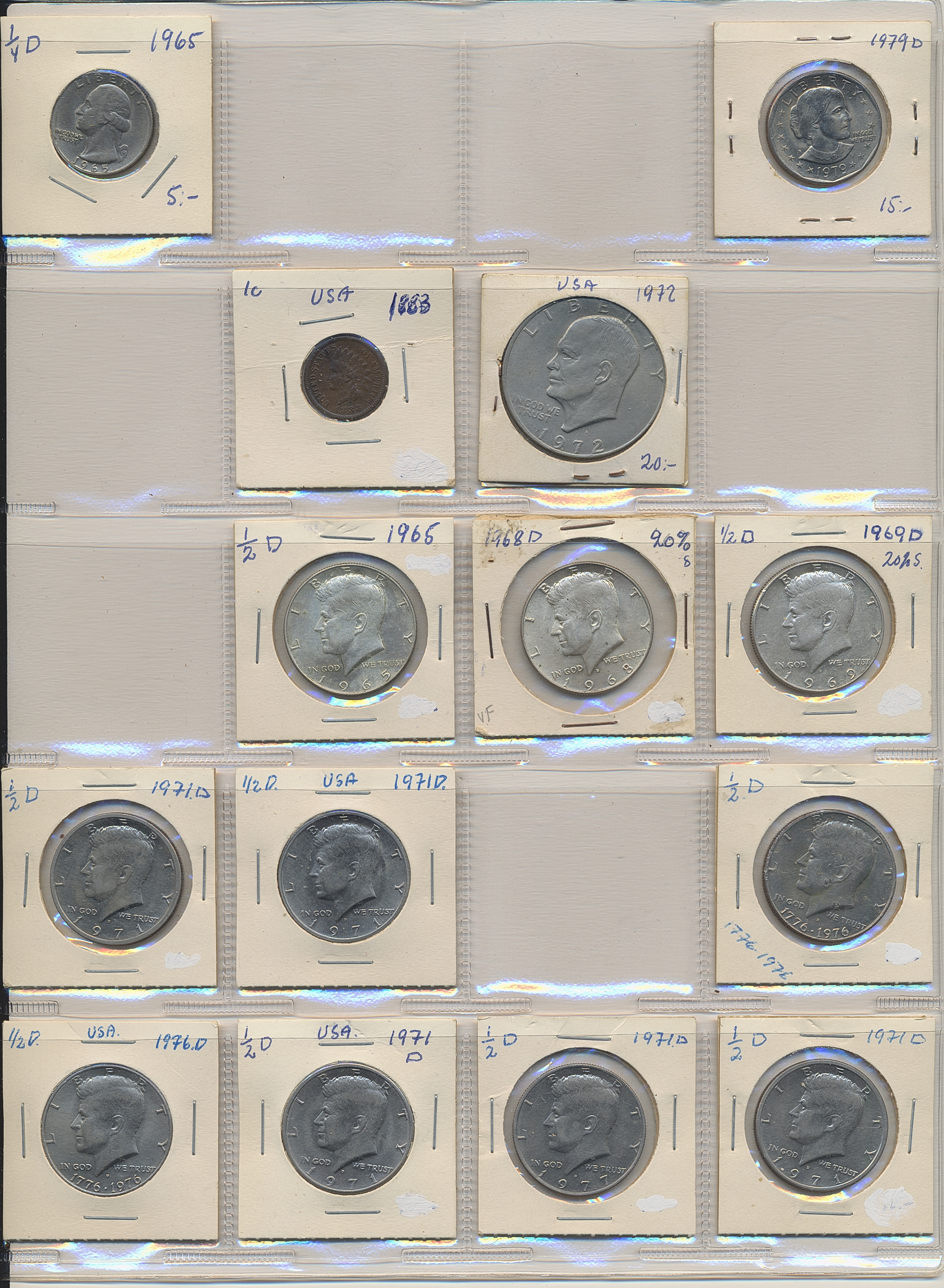 Coins, U.S.A. Album of US coins from 1 cent to dollar size 1800s–modern including some silver. Please inspect! Mixed quality.
