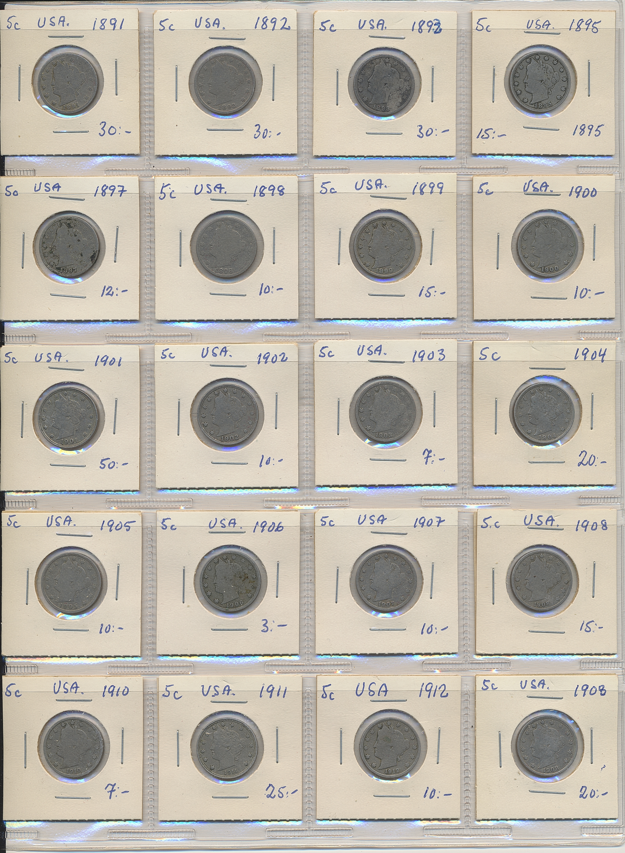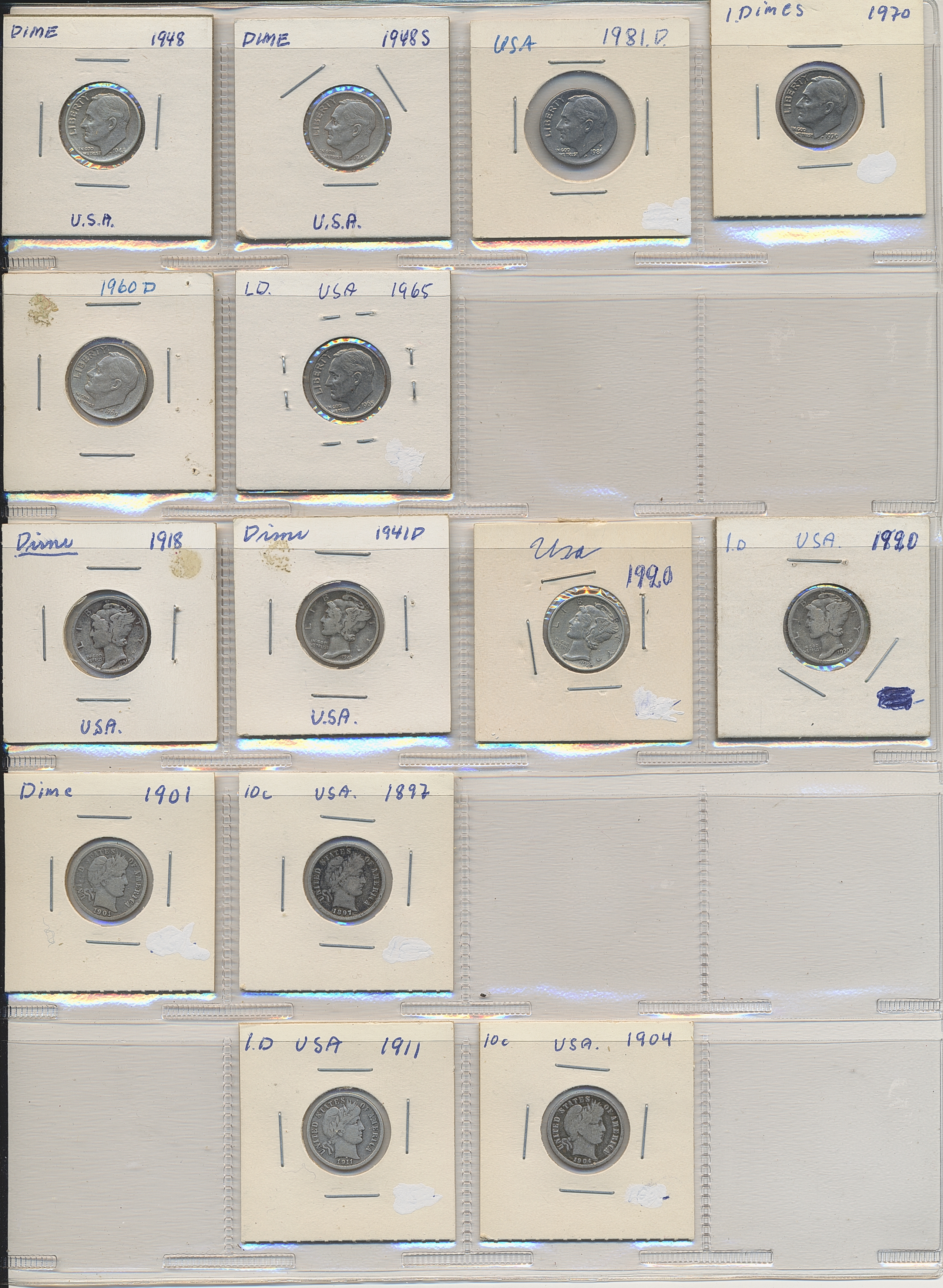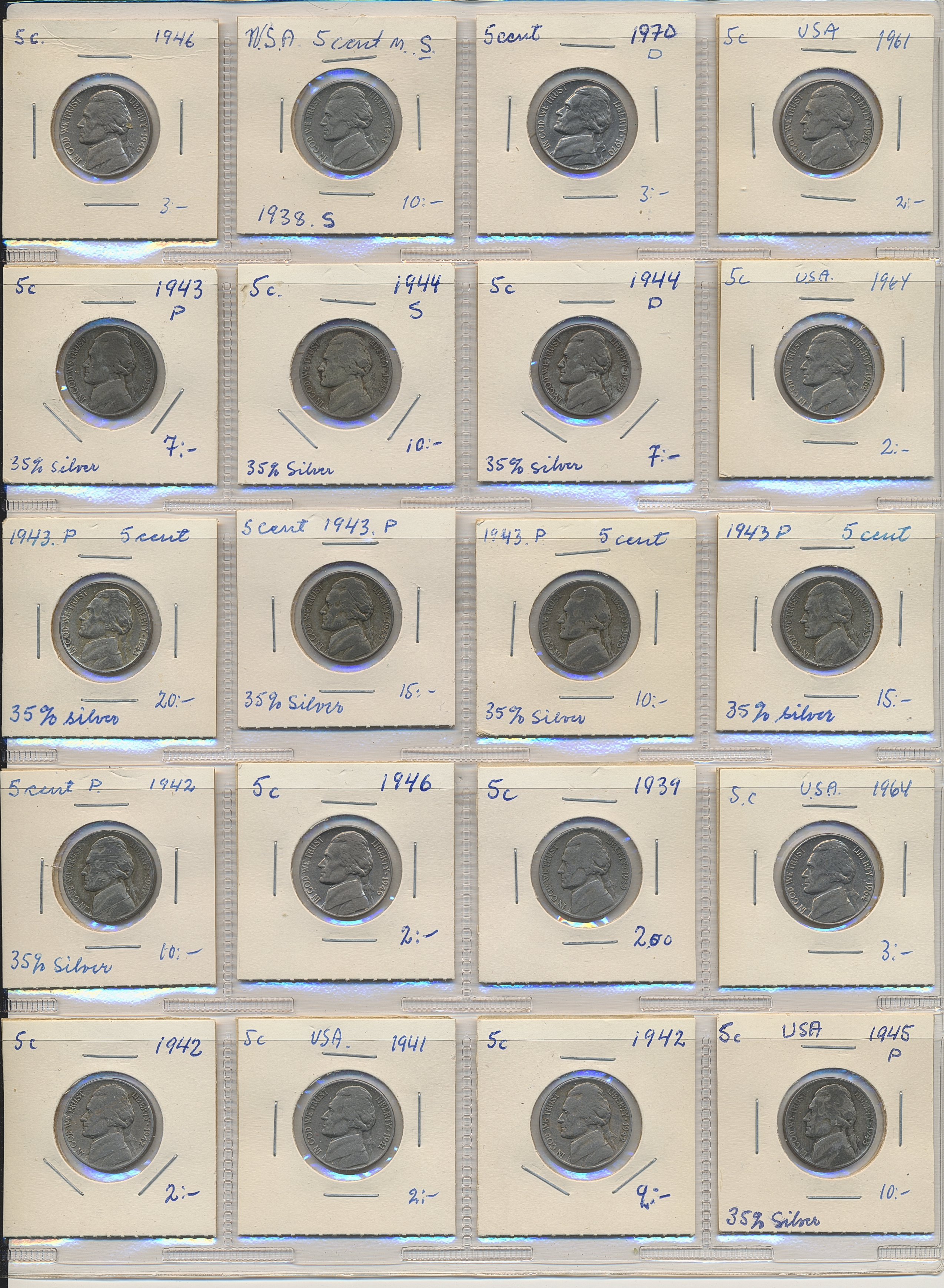 Coins, U.S.A. Album of US coins from 1 cent to dollar size 1800s–modern including some silver. Please inspect! Mixed quality.