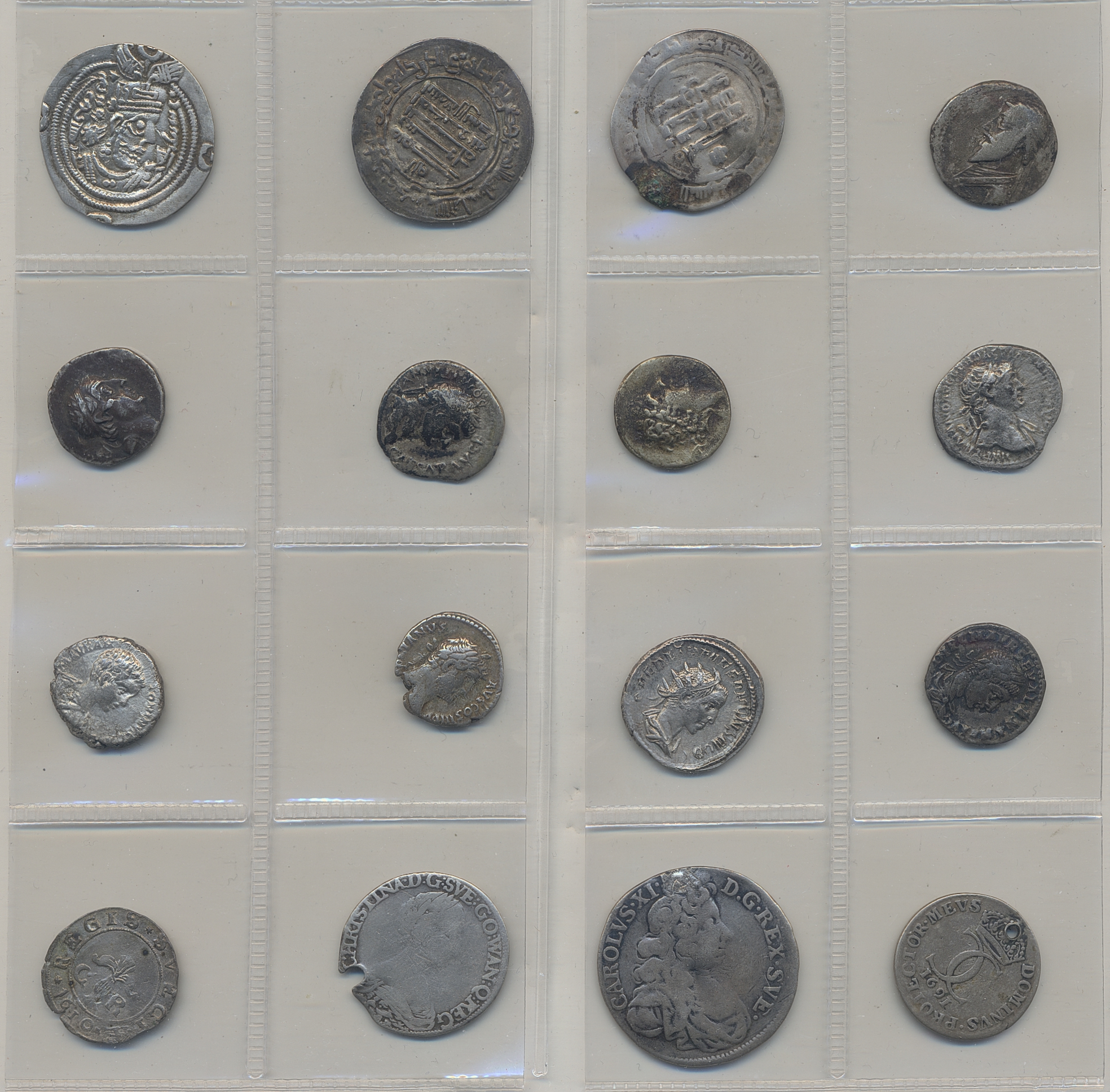 Coins, ALL WORLD. Lot. 22 silver coins from e.g. Roman Empire, Sweden and England. The entire lot is presented at www.philea.se. Mixed quality.