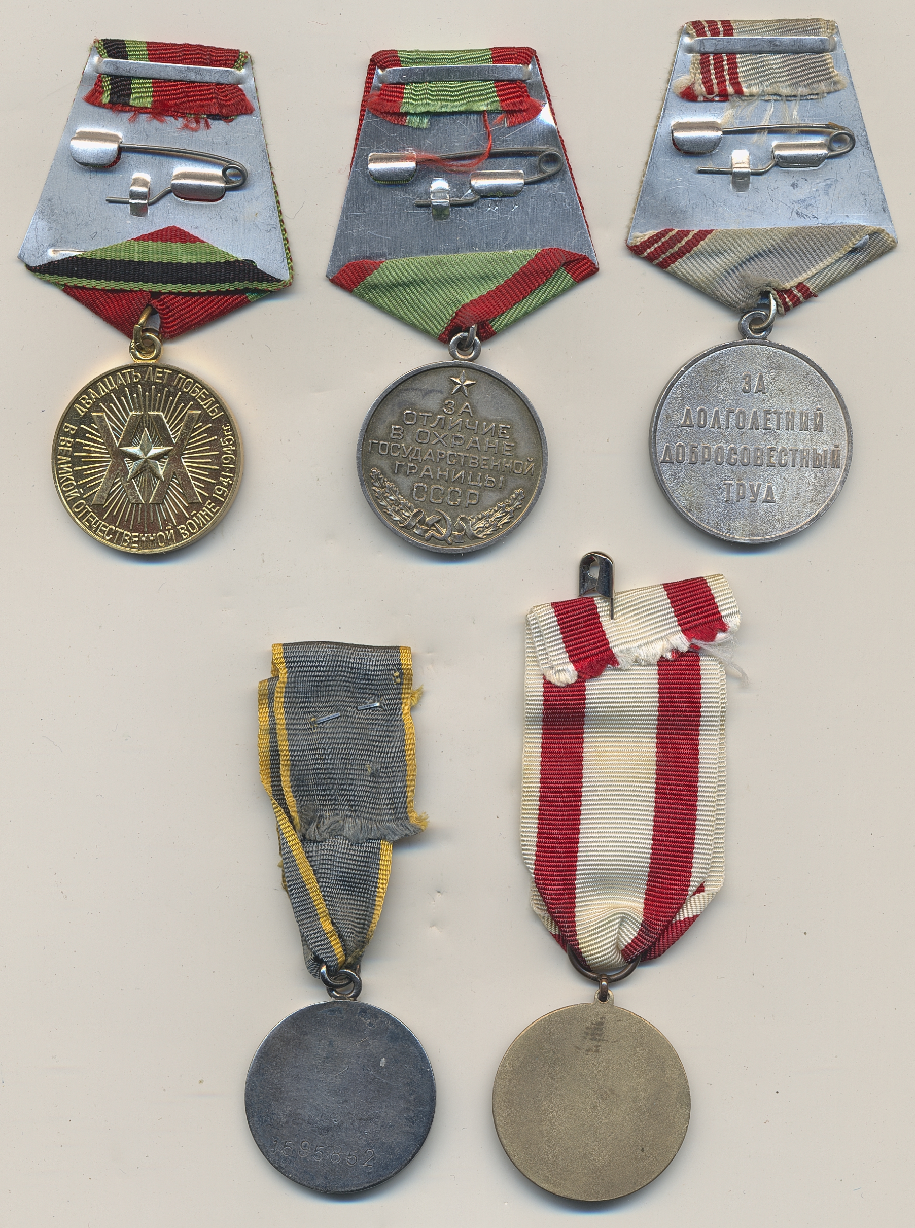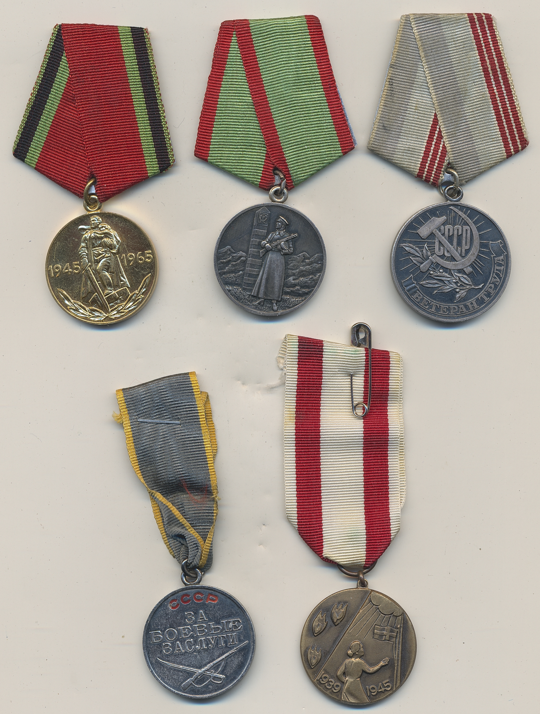 Medals, non-regal, Russia. One box with five medals, military, 1945–1965, mixed quality.