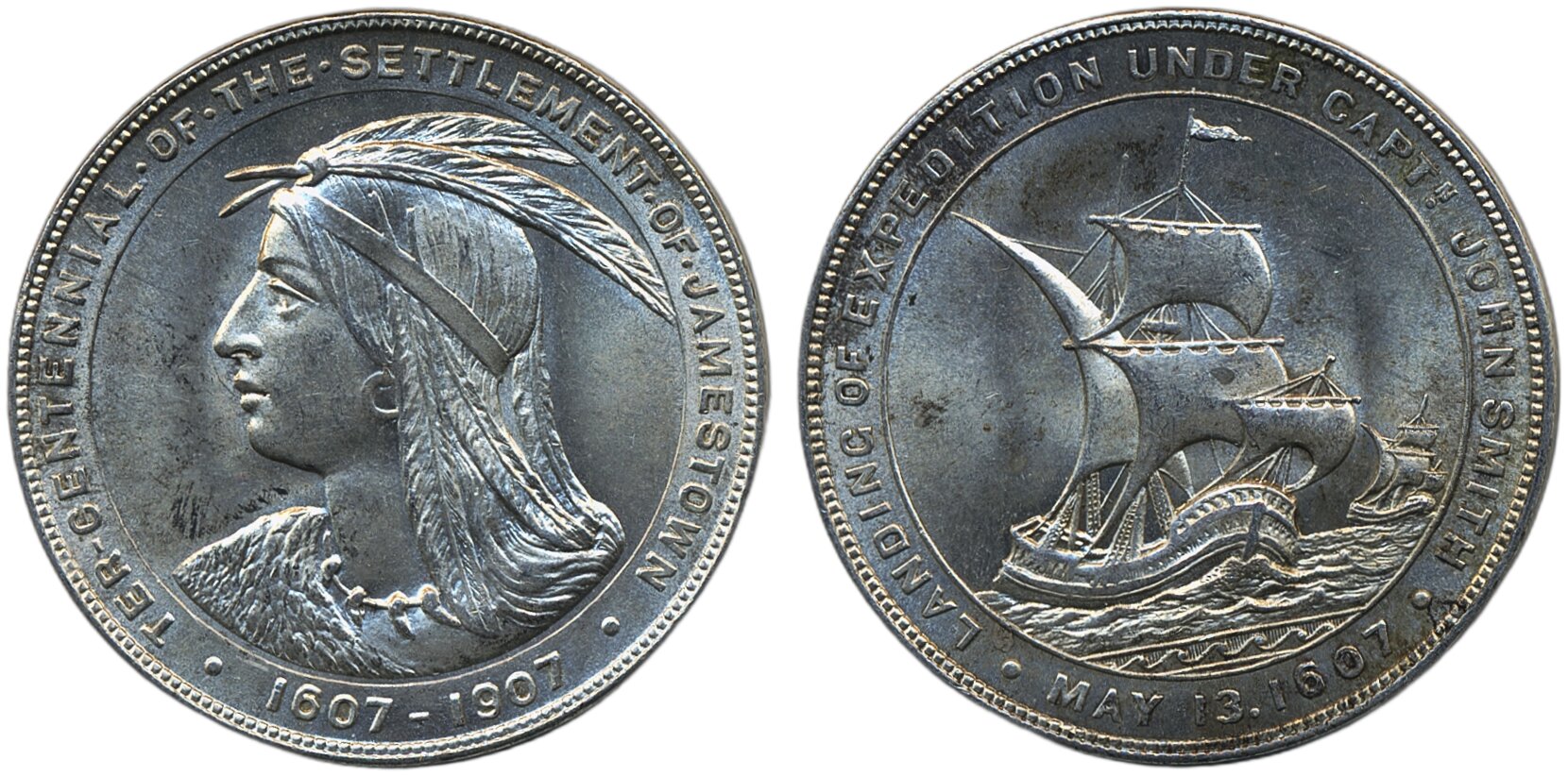 Medals, non-regal, U.S.A. 1907. 18.73 g silver, Ter-centennial of the settlement of jamestown, 1607–1907, Landing of expedition under captain john smith. XF.