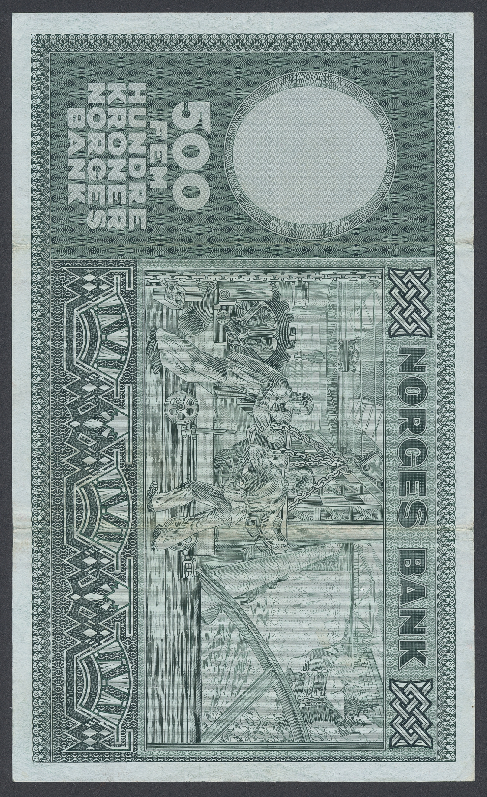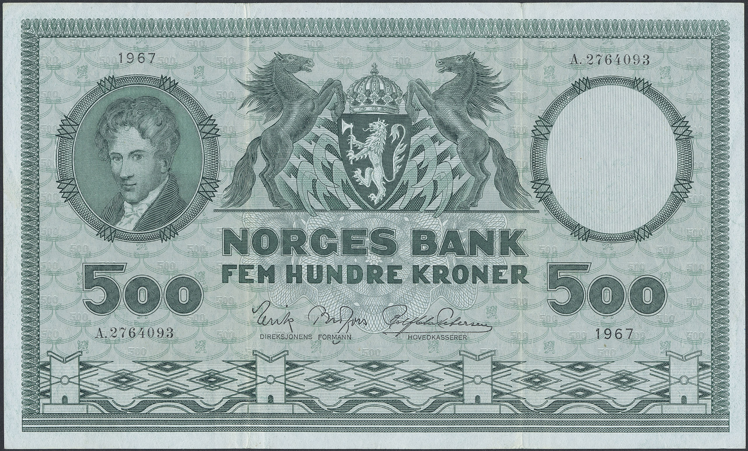 Banknotes, Norway. Pick 34d, 500 kroner 1967. A2764093. 1/1+.