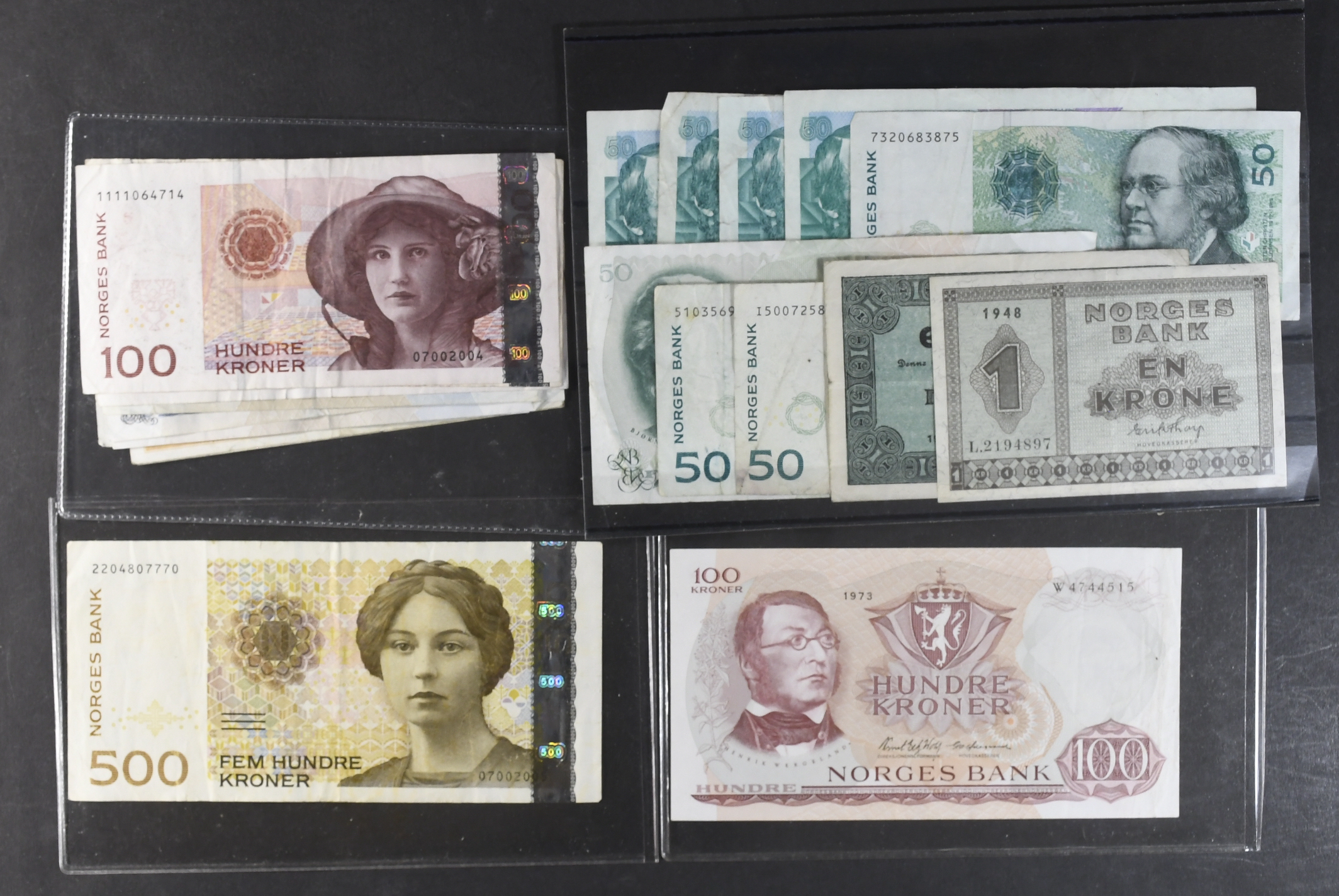 Banknotes, Norway. 22 bank notes incl. one 500, four 100 and eight 50, etc. Mixed quality.