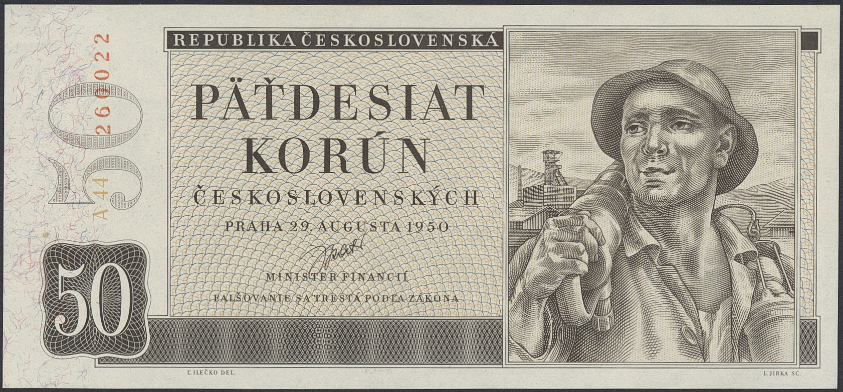 Banknotes, Czechoslovakia. Pick 71a, 50 korun 1950. A 44 260022. Fresh note without folds. XF-UNC.