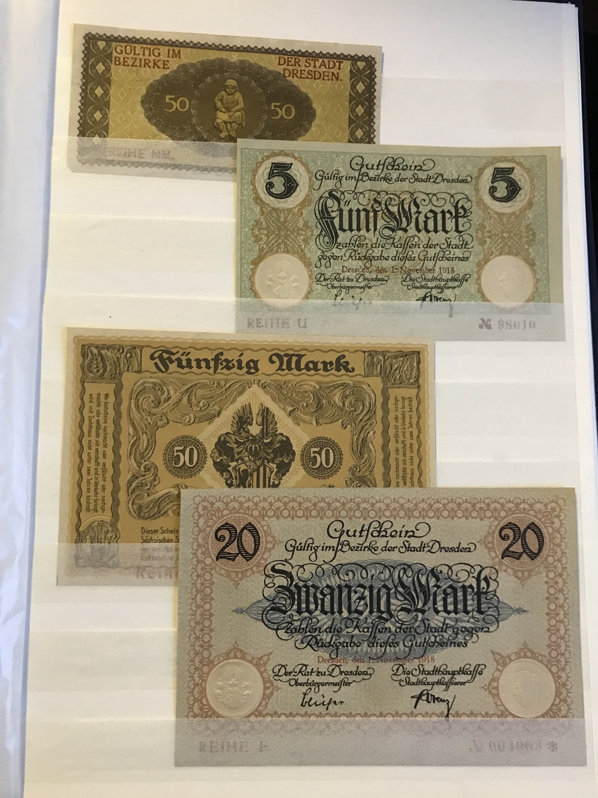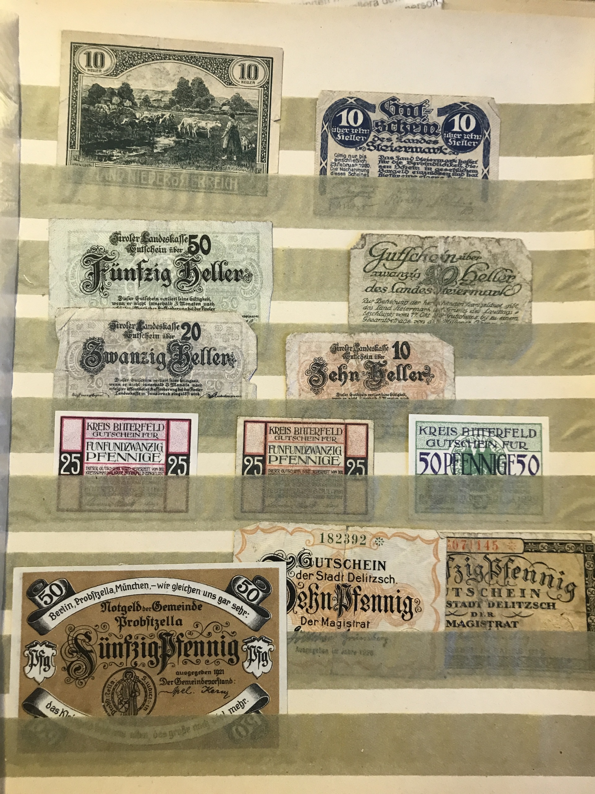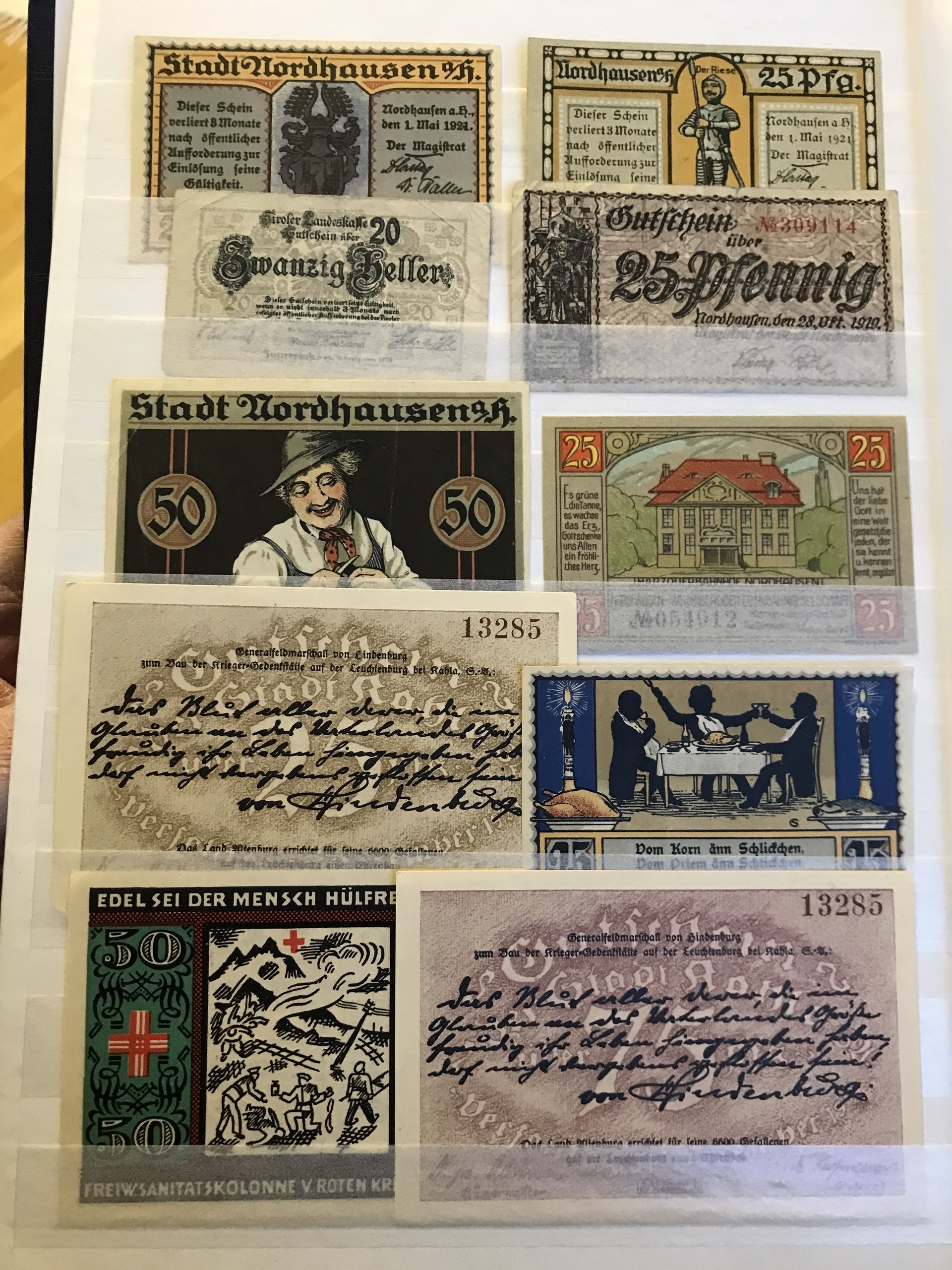 Banknotes, Germany, Reich. About 420 'Notgeld' from a large number of areas mostly 1914–1920 in stockbook + leaves. Please see scans at www.philea.se.