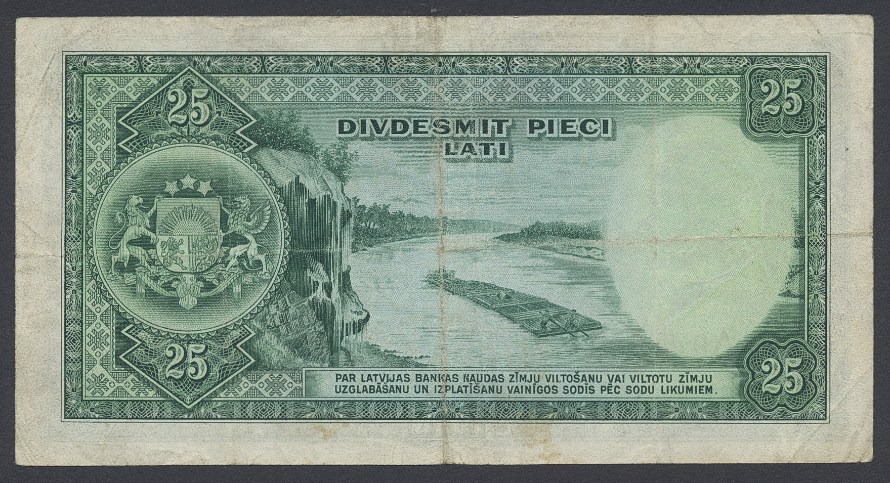 Banknotes, Latvia. Pick 21a, 25 latu 1938. A975682. VF.
