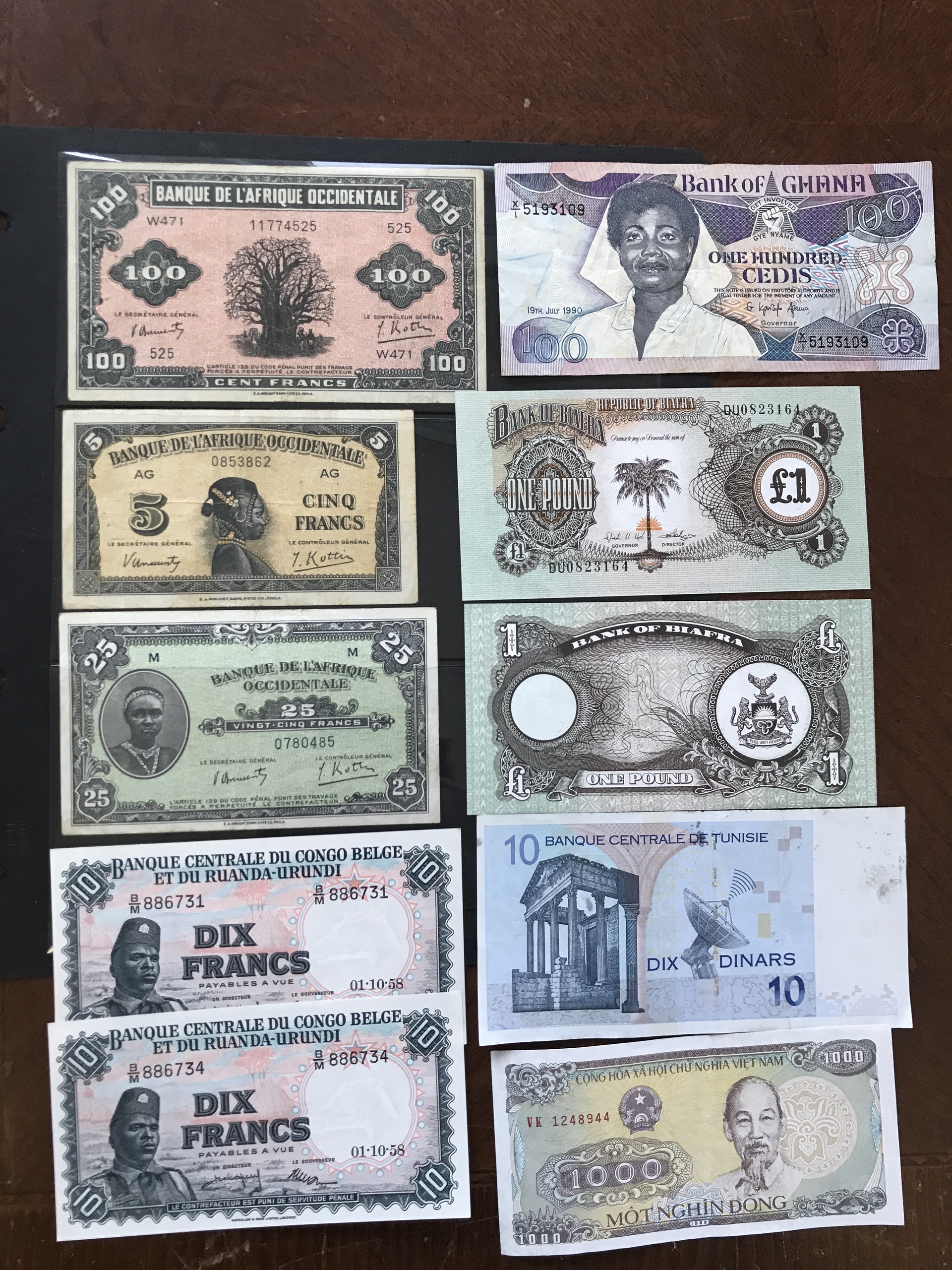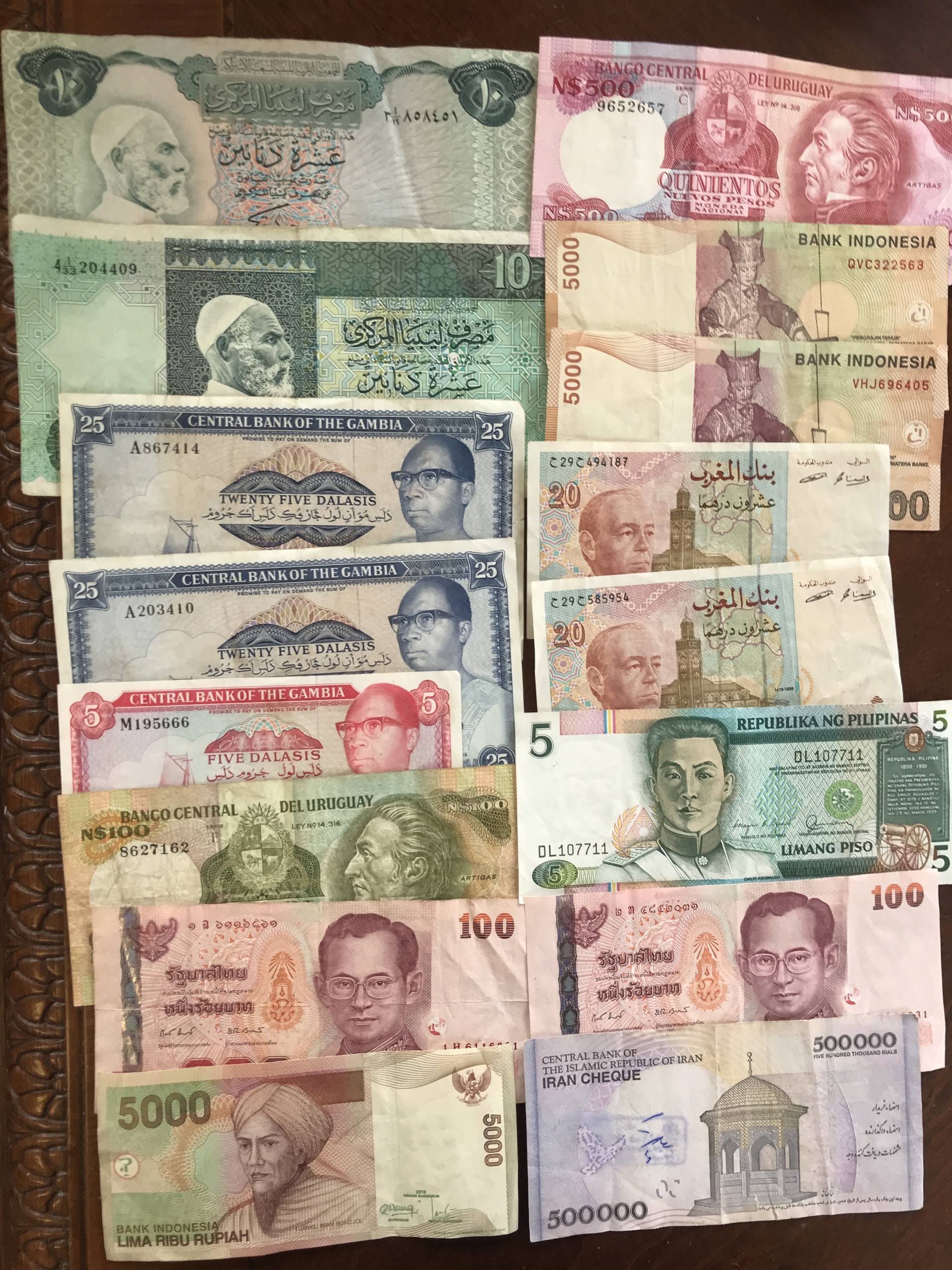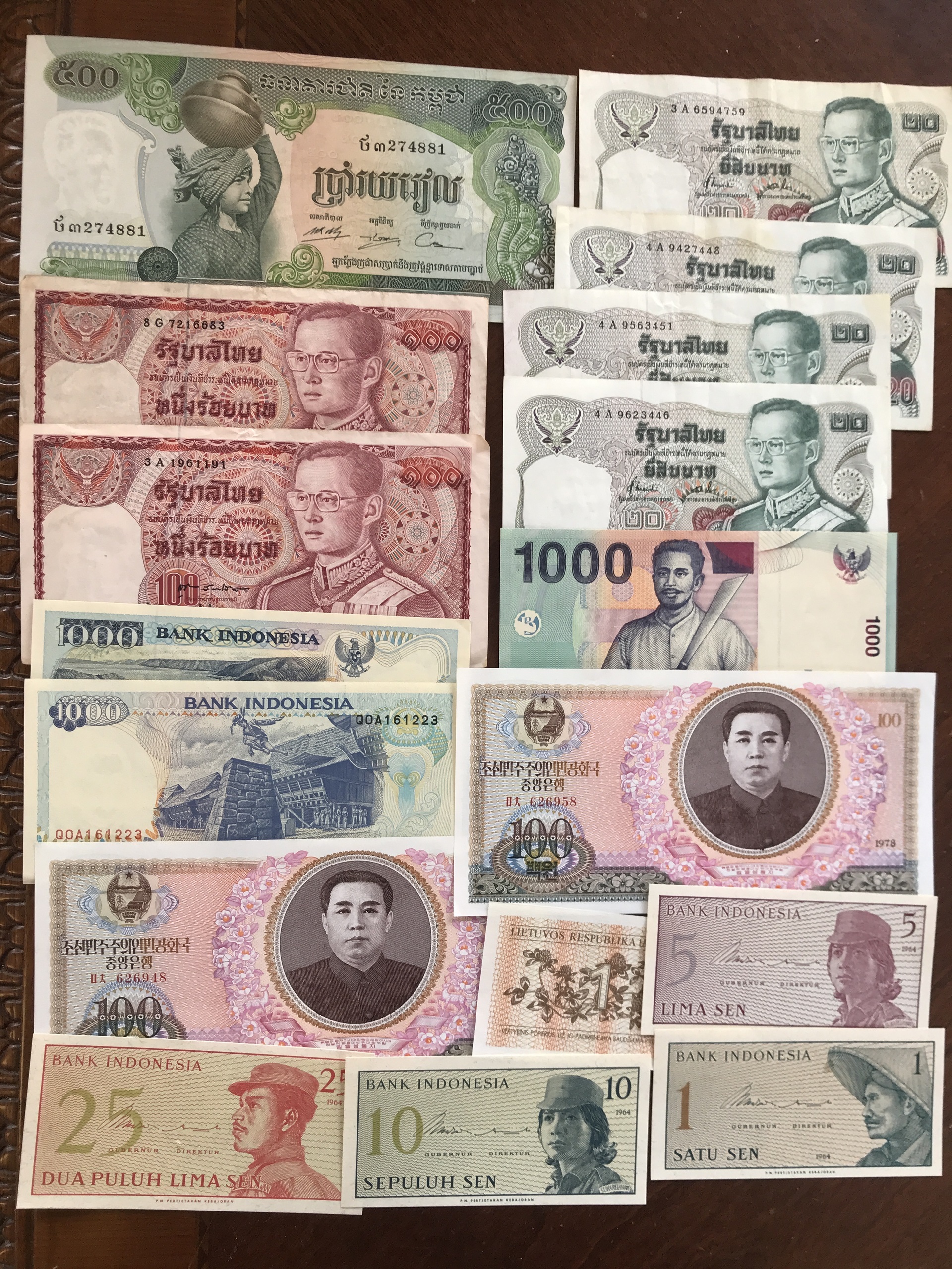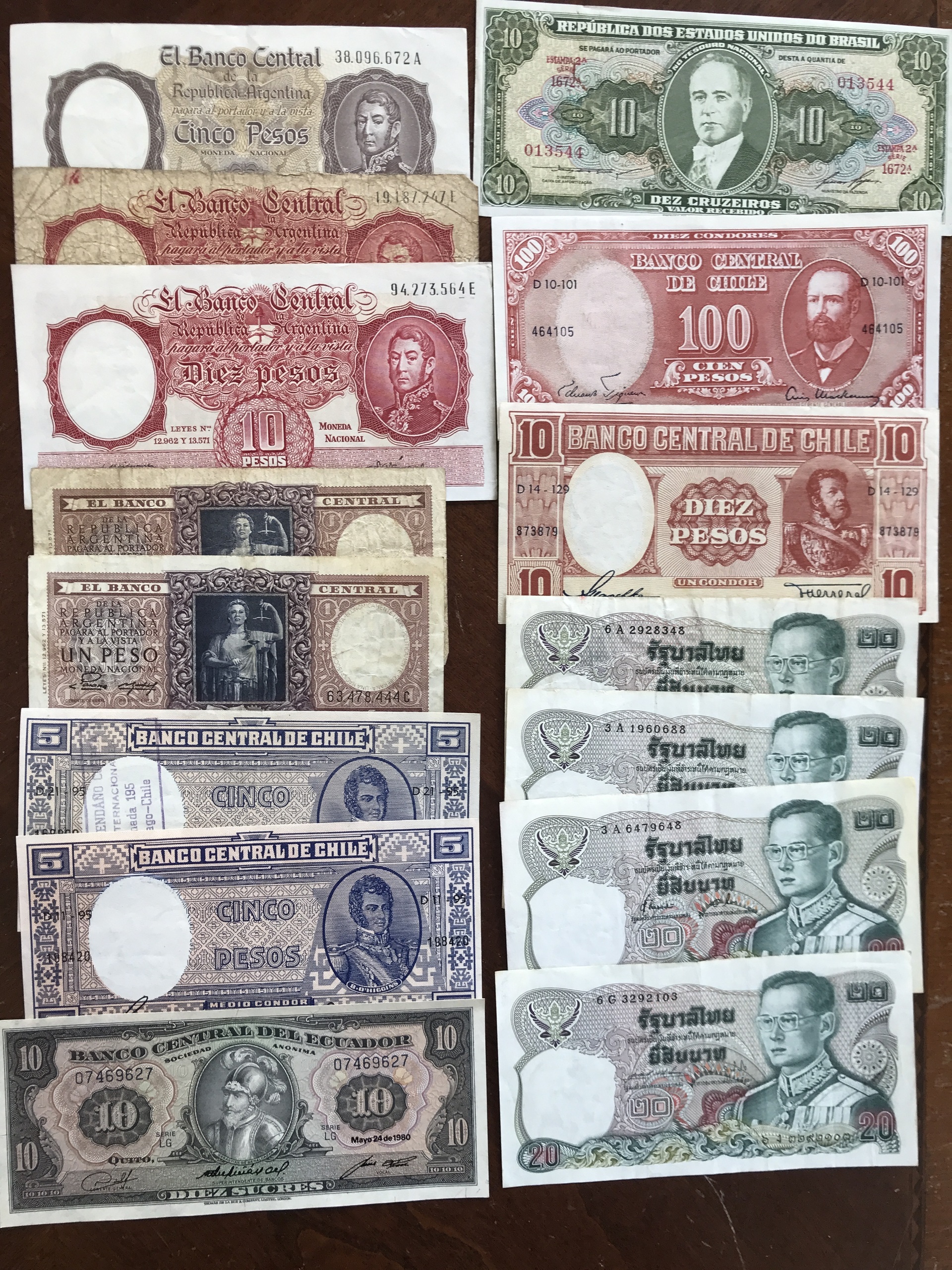 Banknotes, ALL WORLD. About 125 bank notes old–modern. Only Non-European countries incl. some uncirculated. Please see a selection of scans at www.philea.se.