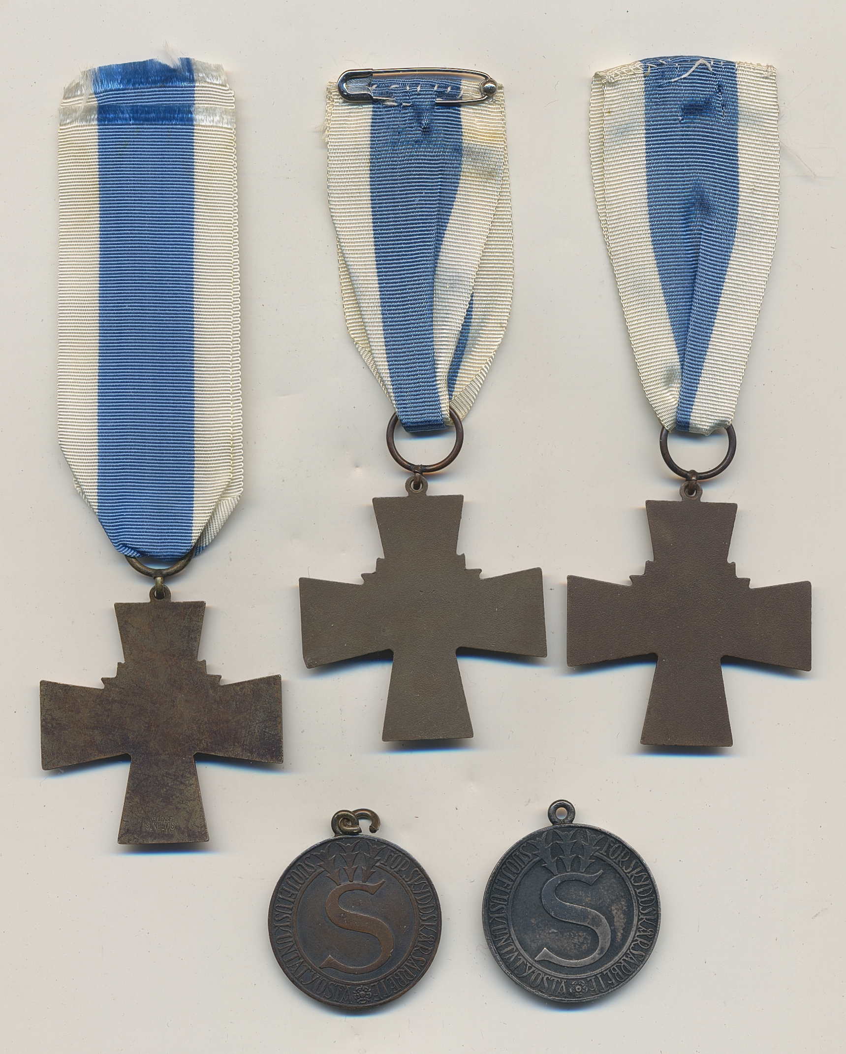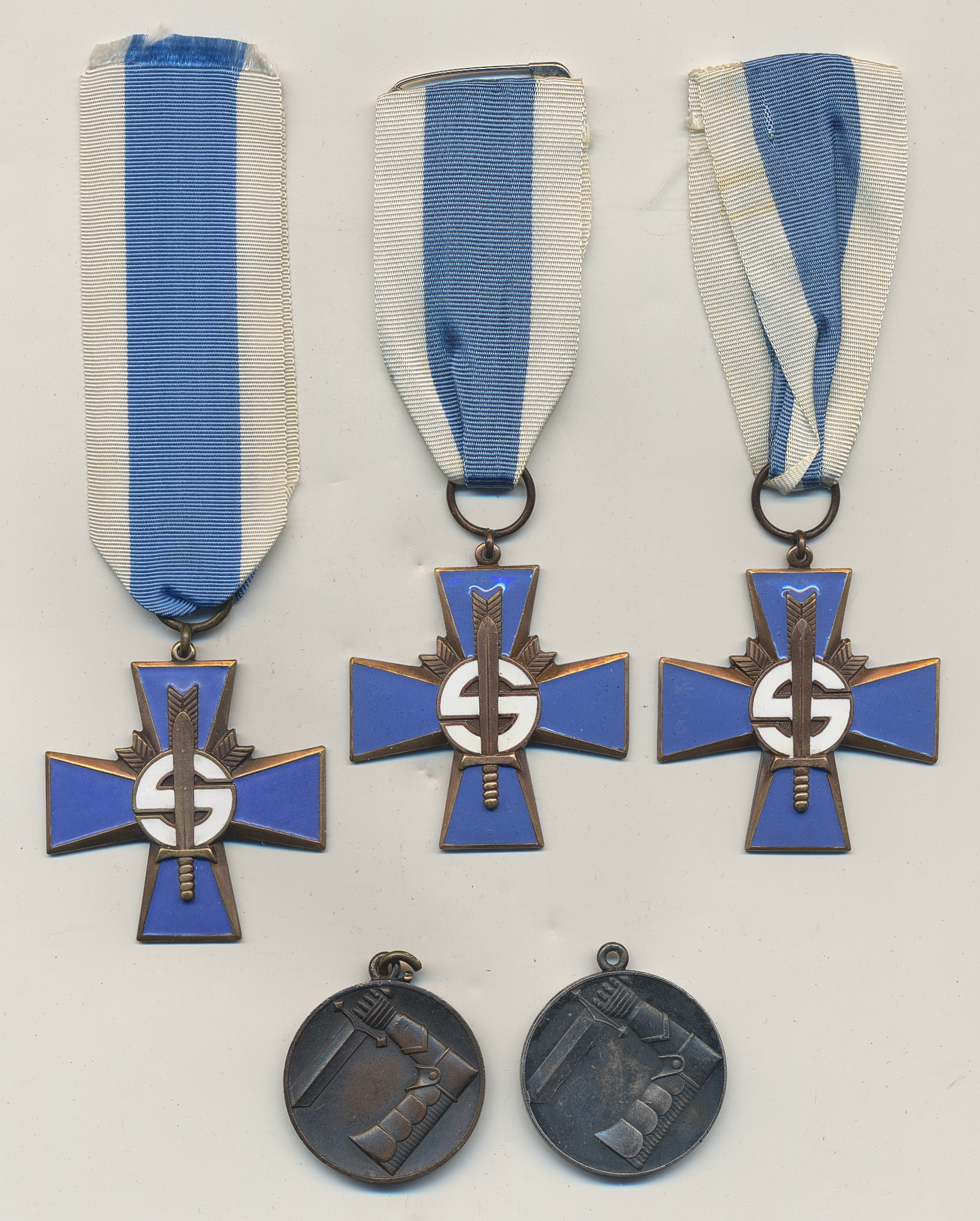 Antiques - Miscellaneous, Finland. One box with five medals, three blue cross medals and two defence corps medals.
