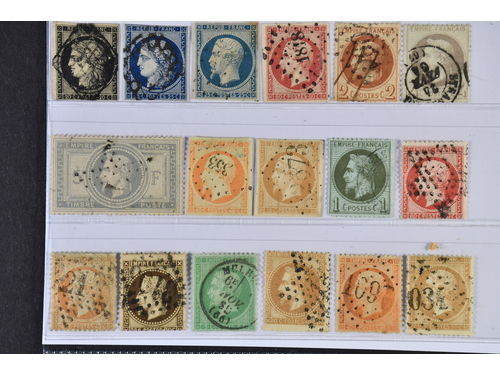 France. Used 1849–1870. All different, e.g. Mi 3-4, 9-11, 16, 18, 23, 25-26, 31, 33, 36. Mostly good quality. Mi € 860 (24) France. Used 1849–1870. All different, e.g. Mi 3-4, 9-11, 16, 18, 23, 25-26, 31, 33, 36. Mostly good quality. Mi € 860 (24) Visa mindre