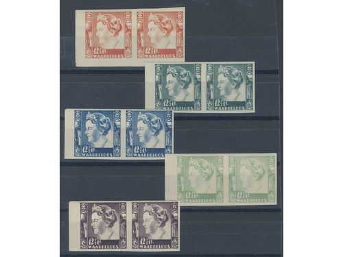 Dutch East Indies. ★, 1938 Queen Wilhelmina 12½ c imperf proofs in 5 different collours, all in pairs. Dutch East Indies. ★, 1938 Queen Wilhelmina 12½ c imperf proofs in 5 different collours, all in pairs. Visa mindre