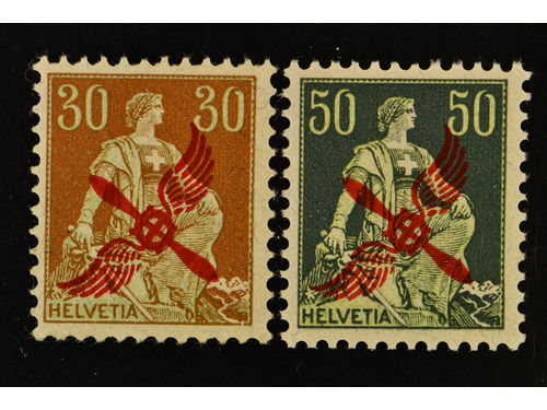 Switzerland. Michel 145 ★★, 1919 Air mail overprint 50 c dark green/light green and 1920 Basel – Frankfurt Line overprin.. Läs mer Switzerland. Michel 145 ★★, 1919 Air mail overprint 50 c dark green/light green and 1920 Basel – Frankfurt Line overprint 30 c brown/green. EUR 365 Visa mindre