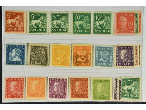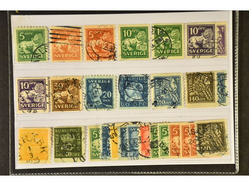 Sweden. Collection ★★/★ 1855– in Leuchtturm album with stamp mounts. 4 skill bco (*), Circle Type, O II, Landstormen I–I.. Läs mer Sweden. Collection ★★/★ 1855– in Leuchtturm album with stamp mounts. 4 skill bco (*), Circle Type, O II, Landstormen I–III compl. Coil stamps, 1924 year sets compl., BC/CB-pars and some official/postage due stamps. Almost compl. after 1910. Please see a selection of scans at www.philea.se. Visa mindre