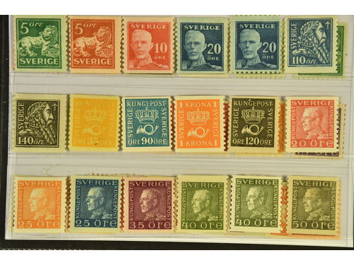 Sweden. Accumulation mostly ★★ 1950–1990 in box. Eight albums/stockbooks with single stamps, series, sets, etc, mostly f.. Läs mer Sweden. Accumulation mostly ★★ 1950–1990 in box. Eight albums/stockbooks with single stamps, series, sets, etc, mostly from the 1950s to the 1970s. Additionally a folder with approx. 30 complete stamp panes (1911–1940) and a year book (1989–1990). Fine quality. Approx. 15 kg. Visa mindre