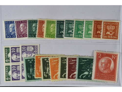 Sweden. ★★/★. Collection Circle types–1979 in Verbis and Leuchtturm album. Containing F35, 46, 48–49 and 60 *, F65 **, g.. Läs mer Sweden. ★★/★. Collection Circle types–1979 in Verbis and Leuchtturm album. Containing F35, 46, 48–49 and 60 *, F65 **, good G V Medallion incl. F96 **, a nice section coil stamps with many **, cpl. Landstorm, Congress and UPU incl. e.g. F225 **, all BC/CB-pairs incl. F337C **, better officials and postage due stamps incl. TJ8 and 18 *, etc. Please see a selection of scans at www.philea.se. Visa mindre