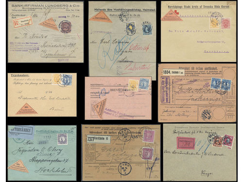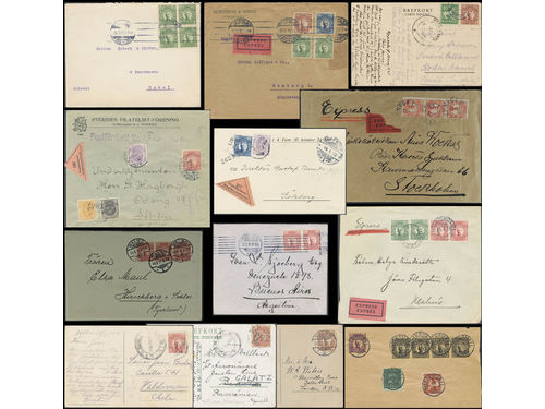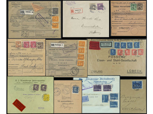 Sweden. Accumulation ★★ 1910–1970 in box. Approximately 15 complete stamp panes (1910–1920), one stockbook with strips (.. Läs mer Sweden. Accumulation ★★ 1910–1970 in box. Approximately 15 complete stamp panes (1910–1920), one stockbook with strips (four stamps or more) 1930–1940s, seven packages with mini sheets from the 1980s and 40 stamp coils (mostly complete) from 1960–1970s. Stamps usable for franking with a face value more than 10000 SEK. Fine quality. Approx. 5 kg. Visa mindre