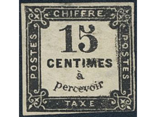 France. Postage due Michel 4 ★, 1870 15 c black. Near cut, not into the picture. EUR 200 France. Postage due Michel 4 ★, 1870 15 c black. Near cut, not into the picture. EUR 200 Visa mindre
