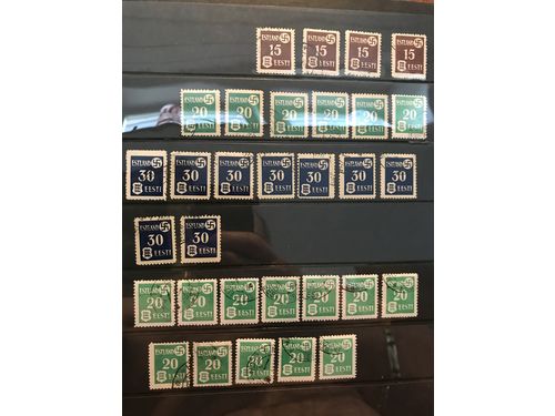 Estonia. ★★/★/⊙. Visir binder with mainly **/o stamps incl. a specialized section German Occupation 1941 Mi1–3 with diff.. Läs mer Estonia. ★★/★/⊙. Visir binder with mainly **/o stamps incl. a specialized section German Occupation 1941 Mi1–3 with different paper and units, Pernau overprints 1941 incl. some type I, also eleven ** souvenir sheets 1938 and one used 1939. Please see a selection of scans at www.philea.se. Visa mindre