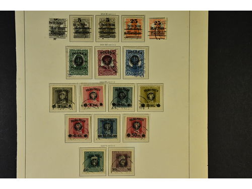 Poland. Collection/accumulation ★/(★) 1918–1960 on leaves. Interesting material starting with the German occupation duri.. Läs mer Poland. Collection/accumulation ★/(★) 1918–1960 on leaves. Interesting material starting with the German occupation during WWI, local overprints (1944), Monte Cassino issue (1944), provisional air mail issues (1921), Liberation of Warsaw, Groszy overprints, Block 12, special issues for stamp exhibitions (1950s), referendum area issues (1920s) and a lot more. Probably more than 200 album leaves. Please see a selection of scans at www.philea.se. Mostly good quality. (>1000) Visa mindre