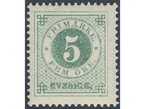Sweden. Facit 30i ★, 5 öre bluish dark-green on calendered paper. Very fine and fresh. Opinion (shade) by O.P. SEK 1300 Sweden. Facit 30i ★, 5 öre bluish dark-green on calendered paper. Very fine and fresh. Opinion (shade) by O.P. SEK 1300 Visa mindre