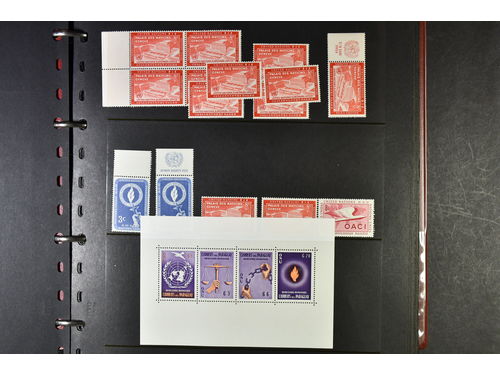 Thematics, United Nations. Collection/accumulation ★★ 1953–1994 in visir album. Stamps, series, sets, etc from all three.. Läs mer Thematics, United Nations. Collection/accumulation ★★ 1953–1994 in visir album. Stamps, series, sets, etc from all three cities (New York, Geneva, vienna). Also including all three "flag issues". Excellent quality. (>2000) Visa mindre