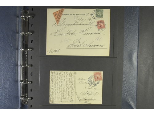 Sweden. Postal stationery. Collection 1872–modern in two binders. Containing two used bKe1 incl. one Schröder, bKd15 rep.. Läs mer Sweden. Postal stationery. Collection 1872–modern in two binders. Containing two used bKe1 incl. one Schröder, bKd15 reply-paid, bKd23 to Finland, kB22 and 23 with add. frank., bKe24c, 21 used bKe33, etc. Please see a selection of scans at www.philea.se. (430) Visa mindre