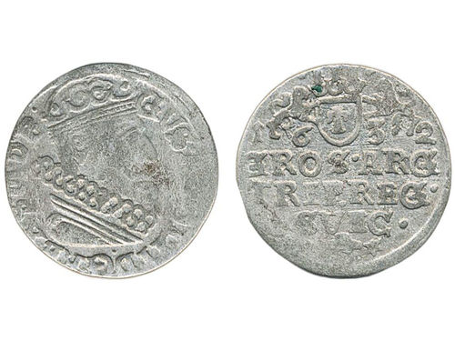 Coins, Sweden. Small lot of three 1/24 taler coins of Elbing and Riga. Elbing Gustav II Adolf 1629 (SB 23), 1631 (S.. Läs mer Coins, Sweden. Small lot of three 1/24 taler coins of Elbing and Riga. Elbing Gustav II Adolf 1629 (SB 23), 1631 (SB 25) and Riga Kristina 1648 (SB 52). 1-1+/01. Visa mindre