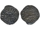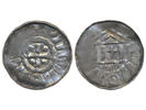 Coins, Germany, Cologne. Archbishop Herrmann II (1039-46), Hävernick 278, 1 pfennig ND. 1.20 g. +HE-RIM-AN-VS in cross angles)(Front of church. Minor peck marks. F-VF. Coins, Germany, Cologne. Archbishop Herrmann II (1039-46), Hävernick 278, 1 pfennig ND. 1.20 g. +HE-RIM-AN-VS in cross angles)(Front of church. Minor peck marks. F-VF. Visa mindre