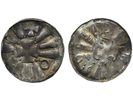 Coins, Germany, Cologne. Otto III (983-1002), 1 pfennig ND. 1.32 g. Cologne monogram with retrograde S)(++OD... partly legible legend with cross with pellets in four angles. VF-XF. Coins, Germany, Cologne. Otto III (983-1002), 1 pfennig ND. 1.32 g. Cologne monogram with retrograde S)(++OD... partly legible legend with cross with pellets in four angles. VF-XF. Visa mindre