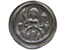 Coins, Germany, Magdeburg. Moritzpfennig ND. 0.90 g. Bracteate. Anonymous type from 13th century. Standing Moritz holding palm branch on left and crosier on right, over globe.. Läs mer Coins, Germany, Magdeburg. Moritzpfennig ND. 0.90 g. Bracteate. Anonymous type from 13th century. Standing Moritz holding palm branch on left and crosier on right, over globe with three towers inside and two flanking. VF-XF. Visa mindre