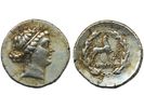 Coins, Ancient, Greek coins. Ptolemy IV (221–205BC). Alexandria. Hemidrachm, 35.65 g. Diademed head of Zeus Ammon right / Eagle standing left on thunderbolt, SNG Copenhagen 221. xxx. Coins, Ancient, Greek coins. Ptolemy IV (221–205BC). Alexandria. Hemidrachm, 35.65 g. Diademed head of Zeus Ammon right / Eagle standing left on thunderbolt, SNG Copenhagen 221. xxx. Visa mindre