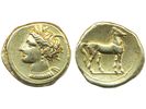 Coins, Ancient, Roman Republic. Sear 6456, shekal didrachm. 7.49 g, gold, 350–320, Carthage. VF. Coins, Ancient, Roman Republic. Sear 6456, shekal didrachm. 7.49 g, gold, 350–320, Carthage. VF. Visa mindre