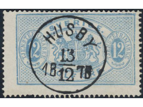 Sweden. Official Facit Tj5 used, Cancelled with a superb cancellation HUSBY (County of Uppland) 13.12.1875. One missing perf. Sweden. Official Facit Tj5 used, Cancelled with a superb cancellation HUSBY (County of Uppland) 13.12.1875. One missing perf. Visa mindre