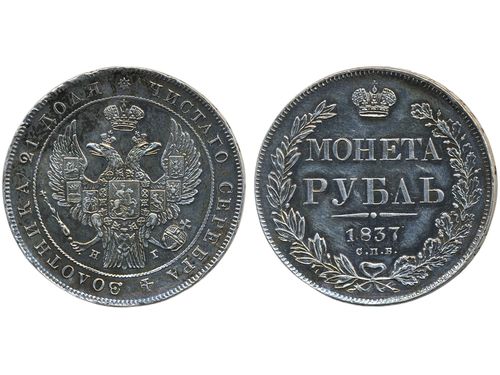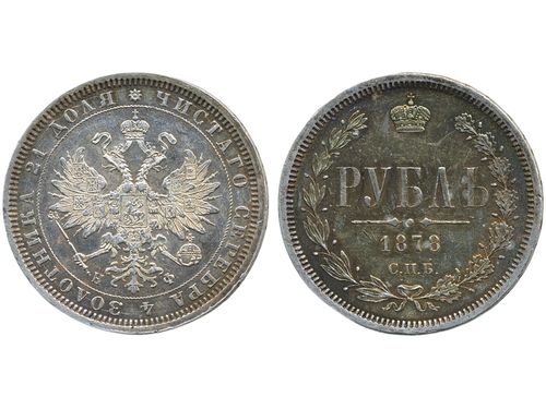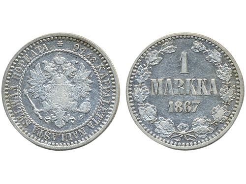 Coins, Finland. Alexander II, KM 3.1, 1 markka 1867. Lightly cleaned. Better date. Bitkin 627. 1+. Coins, Finland. Alexander II, KM 3.1, 1 markka 1867. Lightly cleaned. Better date. Bitkin 627. 1+. Visa mindre
