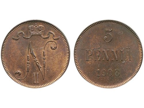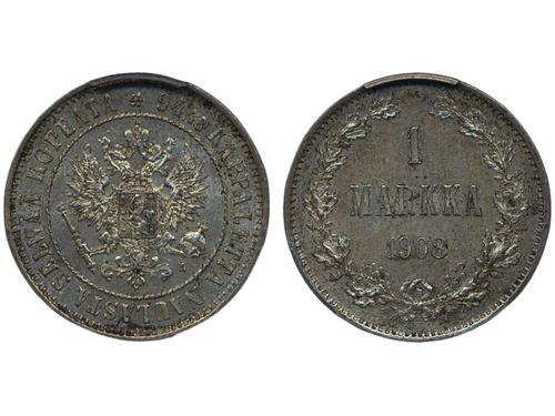 Coins, Finland. Nicholas II, KM 3.2, 1 markka 1908. Graded by PCGS as AU58. Bitkin 400. 01. See certification at PCGS Coins, Finland. Nicholas II, KM 3.2, 1 markka 1908. Graded by PCGS as AU58. Bitkin 400. 01. See certification at PCGS Visa mindre