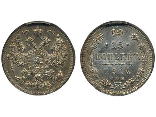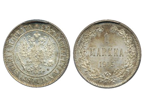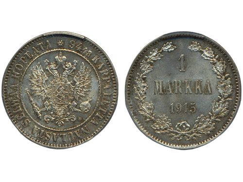 Coins, Finland. Nicholas II, KM 3.2, 1 markka 1915. Graded by PCGS as MS64. Bitkin 401. 01/0. See certification at PCGS Coins, Finland. Nicholas II, KM 3.2, 1 markka 1915. Graded by PCGS as MS64. Bitkin 401. 01/0. See certification at PCGS Visa mindre