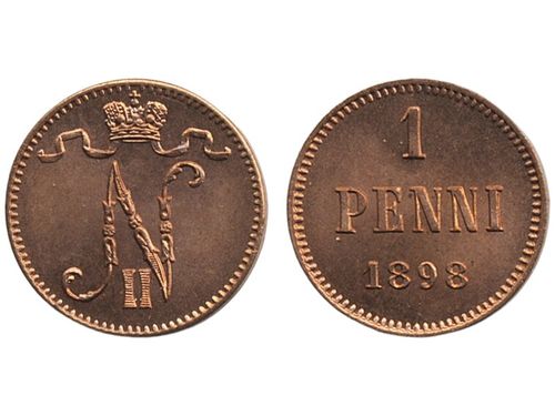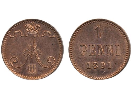 Coins, Finland. Alexander III, Bitkin 254, 1 penni 1891. A beautiful specimen with full red luster. 01/0. Coins, Finland. Alexander III, Bitkin 254, 1 penni 1891. A beautiful specimen with full red luster. 01/0. Visa mindre